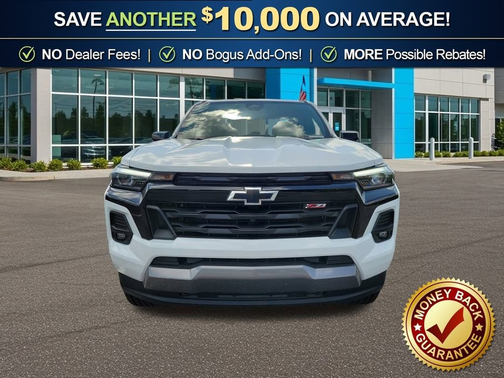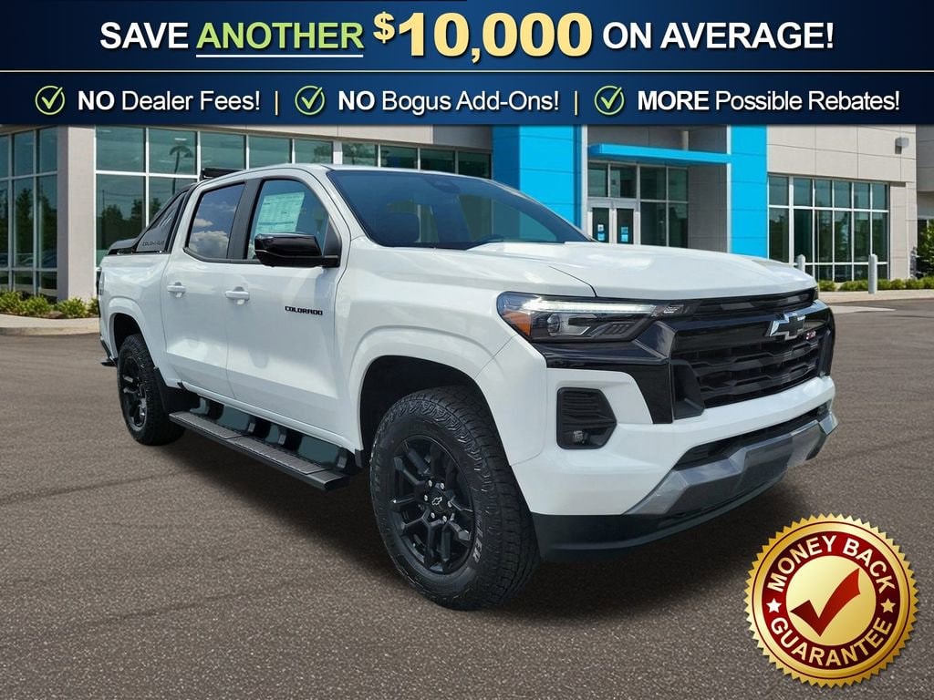 Dealer Discount of $3,971 off MSRP Summit White 2025 Chevrolet Colorado Z71 NCT 4WD 8-Speed Automatic 2.7L I4 Turbocharged DOHC 16V LEV3-ULEV50 310hp 4WD, 3.42 Rear Axle Ratio, 4-Way Manual Passenger Seat Adjuster, 4-Wheel Disc Brakes, 40 Off-Road Roof Light Bar (LPO), 6 Speakers, 6-Speaker Audio System Feature, 8-Way Power Driver Seat Adjuster, ABS brakes, Adaptive Cruise Control, Air Conditioning, Alloy wheels, AM/FM radio: SiriusXM, Apple CarPlay/Android Auto, Auto High-beam Headlights, Auto-dimming Rear-View mirror, Automatic Emergency Braking, Automatic temperature control, Bed-Mounted Sport Bar w/Sail Panel (LPO), Black Assist Steps, Black Nameplates (LPO), Bose Premium 7-Speaker Audio System Feature, Brake assist, Bumpers: body-color, Chevy Safety Assist, Cloth/Evotex Seat Trim, Compass, Delay-off headlights, Driver & Front Passenger Ventilated Seats, Driver door bin, Driver Memory Settings, Driver Seatback Map Pocket, Driver vanity mirror, Dual front impact airbags, Dual front side impact airbags, Electronic Stability Control, Emergency communication system: OnStar, Following Distance Indicator, Forward Collision Alert, Front anti-roll bar, Front Black Recovery Hooks, Front Bucket Seats, Front Center Armrest, Front dual zone A/C, Front fog lights, Front Passenger Seatback Map Pocket, Front Pedestrian & Bicyclist Braking, Front reading lights, Front wheel independent suspension, HD Surround Vision, Heated door mirrors, Heated Driver & Front Passenger Seats, Heated front seats, Heated Steering Wheel, Illuminated entry, IntelliBeam Automatic High Beam On/Off, Lane Keep Assist w/Lane Departure Warning, Low tire pressure warning, Midnight Edition, Navigation System, Occupant sensing airbag, Outside temperature display, Overhead airbag, Overhead console, Panic alarm, Passenger door bin, Passenger vanity mirror, Perforated Leather-Appointed Seat Trim, Power Distribution Box (LPO), Power door mirrors, Power Driver Lumbar Control Seat Adjuster, Power driver seat, Power Sliding Glass w/Manual Shade Sunroof, Power steering, Power windows, Preferred Equipment Group 4Z7, Radio data system, Radio: 11.3 Diagonal Advanced Color LCD Display, Rear Center Armrest, Rear Pedestrian Alert, Rear reading lights, Rear step bumper, Rear window defroster, Remote keyless entry, Security system, SiriusXM Trial Subscription, Speed control, Speed-sensing steering, Split folding rear seat, Steering Wheel Mounted Audio Controls, Steering wheel mounted audio controls, Tachometer, Technology Package, Telescoping steering wheel, Tilt steering wheel, Traction control, Trip computer, Variably intermittent wipers, Wheels: 18 x 8.5 Android Dark Full Gloss Aluminum, Wheels: 18 x 8 High Gloss Black Painted Aluminum, Wireless Phone Projection, Z71 Convenience Package III, 4WD. Price includes: $1000 - Chevrolet Consumer Cash Program. Exp. 03/02/2026