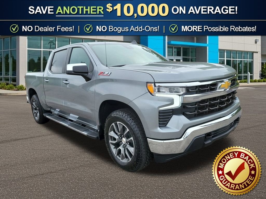 Dealer Discount of $5,291 off MSRP Sterling Gray Metallic 2025 Chevrolet Silverado 1500 LT fctp 4WD 10-Speed Automatic EcoTec3 5.3L V8 10-Speed Automatic, 4WD, Gideon/Very Dark Atmosphere Cloth, 10-Way Power Driver Seat w/Lumbar, 12.3 Multicolor Reconfigurable Digital Display, 120-Volt Bed Mounted Power Outlet, 120-Volt Interior Power Outlet, 170 Amp Alternator, 2 USB Data Ports, 220 Amp Alternator, 3.23 Rear Axle Ratio, 4-Wheel Disc Brakes, 40/20/40 Front Split-Bench Seat, 6 Speakers, 6-Speaker Audio System, ABS brakes, Air Conditioning, All Star Edition Plus, All-Star Edition, All-Weather Floor Liner (LPO) (AAK), Alloy wheels, AM/FM radio: SiriusXM with 360L, Apple CarPlay/Android Auto, Auto High-beam Headlights, Auto-Locking Rear Differential, Automatic Emergency Braking, Automatic temperature control, Auxiliary External Transmission Oil Cooler, Bluetooth® For Phone, Brake assist, Bumpers: chrome, Chevytec Spray-On Black Bedliner, Chrome Assist Steps, Chrome Mirror Caps, Cloth Seat Trim, Color-Keyed Carpeting Floor Covering, Compass, Convenience Package, Convenience Package II, Deep-Tinted Glass, Delay-off headlights, Driver door bin, Driver vanity mirror, Dual Exhaust w/Polished Outlets, Dual front impact airbags, Dual front side impact airbags, Dual Rear USB Ports (Charge Only), Dual-Zone Automatic Climate Control, Electric Rear-Window Defogger, Electronic Cruise Control, Electronic Stability Control, Electronic Transmission Range Selector Shifter, Emergency communication system: OnStar, External Engine Oil Cooler, EZ Lift Power Lock & Release Tailgate, Floor Mounted Center Console, Following Distance Indicator, Forward Collision Alert, Front anti-roll bar, Front Bucket Seats, Front Center Armrest w/Storage, Front dual zone A/C, Front Frame-Mounted Black Recovery Hooks, Front Pedestrian Braking, Front reading lights, Front Rubberized Vinyl Floor Mats, Front wheel independent suspension, Fully automatic headlights, HD Rear Vision Camera, Heated door mirrors, Heated Driver & Front Outboard Passenger Seats, Heated front seats, Heated Power-Adjustable Outside Mirrors, Heated Steering Wheel, Heated steering wheel, Heavy-Duty Air Filter, Hill Descent Control, Hitch Guidance, Hitch Guidance w/Hitch View, Illuminated entry, In-Vehicle Trailering System App, Inside Rear-View Mirror w/Tilt, Integrated Trailer Brake Controller, IntelliBeam Automatic High Beam On/Off, Keyless Open & Start, Lane Keep Assist w/Lane Departure Warning, LED Cargo Area Lighting, Low tire pressure warning, Manual Tilt/Telescoping Steering Column, Multi-Flex Tailgate, Multi-Flex Tailgate Step Lights (LPO), Occupant sensing airbag, Off-Road Suspension, OnStar Services Capable, Outside temperature display, Overhead airbag, Overhead console, Panic alarm, Passenger door bin, Passenger vanity mirror, Power door mirrors, Power driver seat, Power Front Windows w/Driver Express Up/Down, Power Front Windows w/Passenger Express Down, Power Rear Windows w/Express Down, Power Sliding Rear Window w/Rear Defogger, Power steering, Power windows, Preferred Equipment Group 1LT, Premium audio system: Chevrolet Infotainment 3 Premium, Protection Package, Radio data system, Radio: Chevrolet Infotainment 3 Premium System, Rear 60/40 Folding Bench Seat (Folds Up), Rear reading lights, Rear Rubberized-Vinyl Floor Mats, Rear step bumper, Rear Wheelhouse Liners, Rear window defroster, Remote keyless entry, Remote Start Package, Remote Vehicle Starter System, Security system, SiriusXM w/360L Trial Subscription, Speed control, Speed-sensing steering, Split folding rear seat, Standard Suspension Package, Standard Tailgate, Steering Wheel Audio Controls, Steering wheel mounted audio controls, Tachometer, Teen Driver, Telescoping steering wheel, Theft Deterrent System (Unauthorized Entry), Tilt steering wheel, Tire Pressure Monitoring System, Traction control, Trailering P Price includes: $1500 - GM Bonus Cash. Exp. 03/02/2026 $3250 - Che