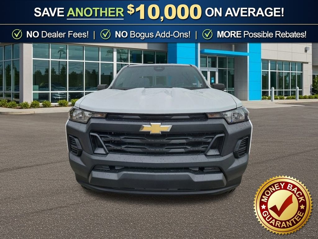 Summit White 2026 Chevrolet Colorado Work Truck NCT RWD 8-Speed Automatic 2.7L I4 Turbocharged DOHC 16V LEV3-ULEV50 310hp 3.42 Rear Axle Ratio, 4-Way Manual Passenger Seat Adjuster, 4-Wheel Disc Brakes, 6 Speakers, 6-Speaker Audio System Feature, 6-Way Manual Driver Seat Adjuster, ABS brakes, Air Conditioning, AM/FM radio: SiriusXM with 360L, Apple CarPlay/Android Auto, Auto High-beam Headlights, Automatic Emergency Braking, Brake assist, Chevy Safety Assist, Cloth Seat Trim, Delay-off headlights, Driver door bin, Driver vanity mirror, Dual front impact airbags, Dual front side impact airbags, Electronic Stability Control, Emergency communication system: OnStar, Following Distance Indicator, Forward Collision Alert, Front anti-roll bar, Front Bucket Seats, Front Center Armrest, Front Pedestrian and Bicyclist Braking, Front wheel independent suspension, Heated door mirrors, IntelliBeam Automatic High Beam on/Off, Lane Keep Assist with Lane Departure Warning, Low tire pressure warning, Navigation System, Occupant sensing airbag, Overhead airbag, Panic alarm, Passenger door bin, Passenger vanity mirror, Power door mirrors, Power steering, Power windows, Preferred Equipment Group 2WT, Radio data system, Radio: 11.3 Diagonal Advanced Color LCD Display, Rear step bumper, Rear window defroster, Remote keyless entry, Security system, SiriusXM with 360L Trial Subscription, Speed control, Speed-sensing steering, Split folding rear seat, Steering Wheel Mounted Audio Controls, Steering wheel mounted audio controls, Tachometer, Tilt steering wheel, Traction control, Trip computer, Variably intermittent wipers, Wheels: 17 x 8 Ultra Silver Metallic Steel, Wireless Phone Projection. Price includes: $1000 - Chevrolet Consumer Cash Program. Exp. 03/02/2026