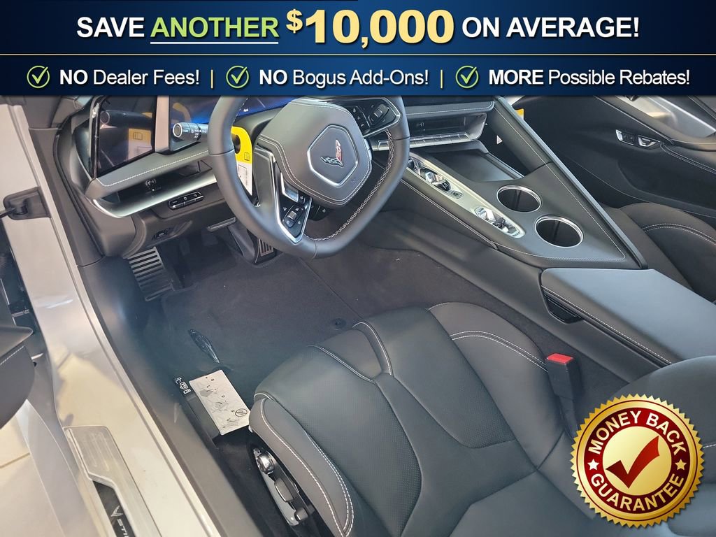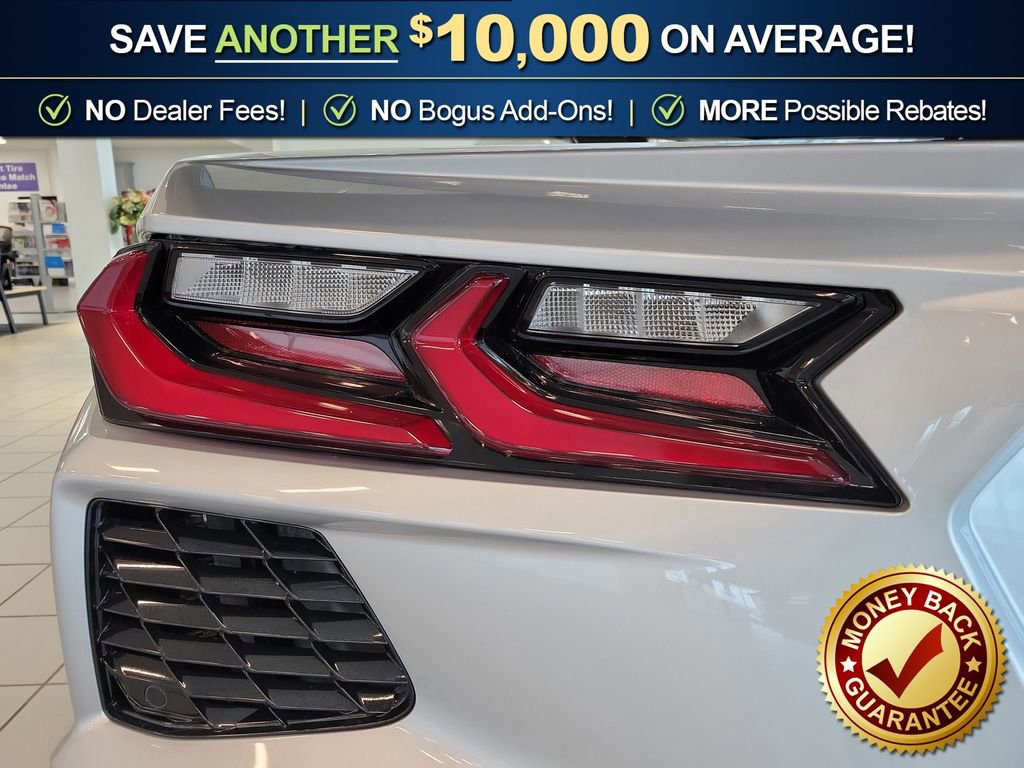 Dealer Discount of $9,908 off MSRP Blade Silver Metallic 2026 Chevrolet Corvette Stingray 2LT RWD 8-Speed Dual Clutch 6.2L V8 14 Speakers, 19 x 8.5 Front/20 x 11 Rear Tech Bronze Wheels, 2 Cargo Nets, 3 Years OnStar One, 4-Wheel Disc Brakes, 8-Way Power Driver Seat Adjuster, 8-Way Power Passenger Seat Adjuster, ABS brakes, Air Conditioning, Alloy wheels, AM/FM radio: SiriusXM, Auto High-beam Headlights, Auto-dimming door mirrors, Auto-dimming Rear-View mirror, Automatic temperature control, Black Exhaust Tips, Bose Performance Series Sound System with 14 Speakers, Brake assist, Bumpers: body-color, Compass, Competition Sport Bucket Seats, Delay-off headlights, Driver door bin, Driver Power Bolster Seat Adjuster, Driver vanity mirror, Dual front impact airbags, Dual front side impact airbags, Electrical Theft Deterrent System, Electronic Stability Control, Emergency communication system: OnStar and Chevrolet connected services capable, Exterior Parking Camera Rear, Four wheel independent suspension, Front anti-roll bar, Front Bucket Seats, Front Center Armrest, Front dual zone A/C, Front reading lights, Fully automatic headlights, Garage door transmitter, GT1 Bucket Seats, HD Front and Rear Vision Cameras, Head-Up Display, Heads-Up Display, Heated and Vented Driver and Passenger Seats, Heated door mirrors, Heated front seats, Heated Steering Wheel, Heated steering wheel, Illuminated entry, Leather Shift Knob, Leather steering wheel, Low tire pressure warning, Memory Driver and Passenger Convenience Package, Memory seat, Mulan Leather Seating Surfaces with Perforated Inserts, Navigation System, Occupant sensing airbag, Outside temperature display, Overhead console, Panic alarm, Passenger door bin, Passenger Power Bolster Seat Adjuster, Passenger vanity mirror, Performance Data and Video Recorder, Performance Exhaust with Stainless-Steel Tips, Power door mirrors, Power Driver Lumbar Control Seat Adjuster, Power driver seat, Power Passenger Lumbar Control Seat Adjuster, Power passenger seat, Power steering, Power windows, Power-Adjustable Outside Heated Mirrors, Preferred Equipment Group 2LT, Premium audio system: Chevrolet Infotainment 3 Premium, Premium Carpeted Floor Mats, Radio data system, Radio: Infotainment System with Google Built-in, Rear anti-roll bar, Rear Cross Traffic Alert, Rear window defroster, Remote keyless entry, Roof Panel Storage Pouch, Security system, Side Blind Zone Alert, Speed control, Speed-sensing steering, Sport steering wheel, Steering wheel memory, Steering wheel mounted audio controls, Tachometer, Telescoping steering wheel, Tilt steering wheel, Traction control, Trip computer, Turn signal indicator mirrors, Universal Home Remote, Variably intermittent wipers, Vehicle Inclination Theft Deterrent Sensor, Vehicle Interior Movement Theft Deterrent Sensor, Ventilated front seats, Visible Carbon Fiber 2-Stanchion Spoiler, Voltmeter, Wheels: 19 x 8.5 Front and 20 x 11 Rear 5-Split-Spoke, Wheels: 19 x 8.5 Front and 20 x 11 Rear Bright, Wireless Phone Charging.