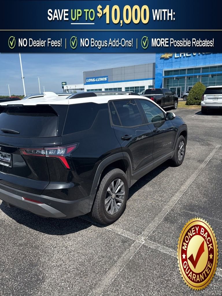 Dealer Discount of $2,349 off MSRP Mosaic Black Metallic 2026 Chevrolet Equinox LT fctp AWD 8-Speed Automatic 1.5L DOHC AWD, 2-Way Power Driver Lumbar Control Seat Adjuster, 3.47 Final Drive Axle Ratio, 4-Wheel Disc Brakes, 6 Speakers, ABS brakes, Air Conditioning, Alloy wheels, AM/FM radio: SiriusXM, Auto High-beam Headlights, Autosense Hands-Free Programmable Power Liftgate, Brake assist, Bumpers: body-color, Cabin Humidity and Windshield Sensor, Cloth Seat Trim, Compass, Convenience Package II, Delay-off headlights, Driver 6-Way Manual Seat Adjuster, Driver 8-Way Power Seat Adjuster, Driver door bin, Driver vanity mirror, Dual front impact airbags, Dual front side impact airbags, Dual-Zone Automatic Climate Control, Electronic Stability Control, Emergency communication system: OnStar and Chevrolet connected services capable, Evotex Seat Trim, Four wheel independent suspension, Front and Rear Black Bowtie Emblems, Front anti-roll bar, Front Bucket Seats, Front Center Armrest, Front Passenger 4-Way Manual Seat Adjuster, Front reading lights, Fully automatic headlights, Heated door mirrors, Heated Driver and Front Passenger Seats, Heated front seats, Heated steering wheel, Heated Wiper Park, Illuminated entry, Intermittent Front Rain-Sensing Wipers, Low tire pressure warning, Navigation System, Occupant sensing airbag, Outside temperature display, Overhead airbag, Overhead console, Overhead Sunglass Storage, Panic alarm, Passenger door bin, Passenger vanity mirror, Power door mirrors, Power Dual Glass Panoramic Sliding Sunroof, Power steering, Power windows, Preferred Equipment Group 2LT, Premium audio system: Chevrolet Infotainment 3, Programmable Universal Home Remote, Radio data system, Radio: 11.3 Diagonal Advanced Color LCD Display, Rear anti-roll bar, Rear reading lights, Rear seat center armrest, Rear window defroster, Rear window wiper, Remote keyless entry, Roof Rails, Security system, SiriusXM with 360L Trial Subscription, Speed control, Speed-sensing steering, Split folding rear seat, Spoiler, Steering wheel mounted audio controls, Summit White Mirror Caps, Summit White Roof, Tachometer, Telescoping steering wheel, Tilt steering wheel, Traction control, Trip computer, Variably intermittent wipers, Wheels: 17 Grazen Metallic Machined-Face Aluminum, Wireless Phone Charging For Portable Devices, AWD.