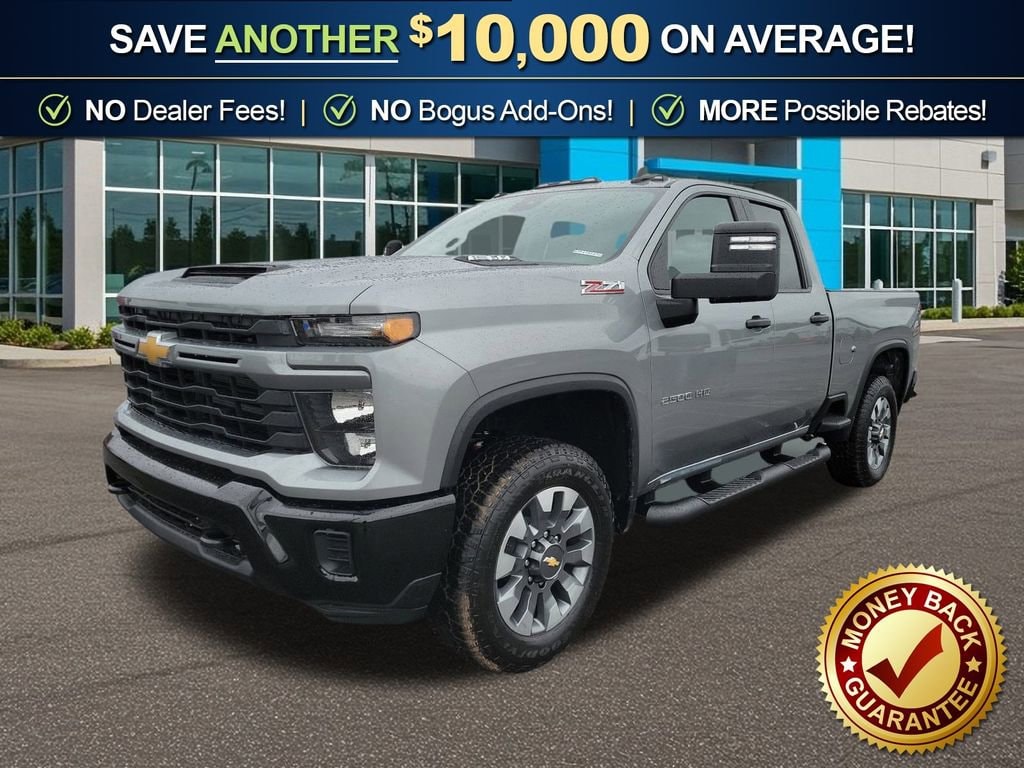 Dealer Discount of $3,302 off MSRP Sterling Gray Metallic 2026 Chevrolet Silverado 2500HD Custom NCT 4WD 10-Speed Automatic 6.6L V8 10-Speed Automatic, 4WD, Jet Black Cloth, 10-Way Power Driver Seat Adjuster with Lumbar, 120-Volt Bed Mounted Power Outlet, 120-Volt Interior Power Outlet, 170 Amp Alternator, 2-Speed Electronic Shift Transfer Case, 3.5 Diagonal Monochromatic Display DIC, 3.73 Rear Axle Ratio, 4-Wheel Disc Brakes, 4 Round Black Assist Steps, 6 Speakers, 6-Speaker Audio System, 720 Cold-Cranking Amps Heavy-Duty Battery, ABS brakes, Air Conditioning, Alloy wheels, AM/FM radio: SiriusXM with 360L, Apple CarPlay/Android Auto, Auto High-beam Headlights, Black Mirror Caps, Bluetooth® For Phone, Brake assist, Chevrolet Connected Access Capable, Cloth Seat Trim, Color-Keyed Carpeting Floor Covering, Compass, Custom Convenience Package, Deep-Tinted Glass, Delay-off headlights, Driver door bin, Dual front impact airbags, Dual front side impact airbags, Dual Rear USB Ports (charge Only), Durabed Pickup Bed, Electric Rear-Window Defogger, Electronic Cruise Control with Set and Resume Speed, Electronic Stability Control, Emergency communication system: OnStar, EZ Lift Power Lock and Release Tailgate, Front 40/20/40 Split-Bench Seats with Lockable Storage, Front anti-roll bar, Front Center Armrest w/Storage, Front reading lights, Front Rubberized Vinyl Floor Mats, Front wheel independent suspension, Fully automatic headlights, HD Rear Vision Camera, Heated door mirrors, Heated Vertical Trailering Mirrors, Hill Descent Control, Illuminated entry, LED Cargo Area Lighting, LED Smoked Amber Roof Marker Lamps, Locking Tailgate, Low tire pressure warning, Manual Tailgate Function with No EZ Lift, Manual Tilt-Wheel Steering Column, Multi-Flex Tailgate, Occupant sensing airbag, Off-Road Suspension, OnStar Services Capable, Outside temperature display, Overhead airbag, Overhead console, Panic alarm, Passenger door bin, Passenger vanity mirror, Power Door Locks, Power door mirrors, Power Front Windows with Driver Express Up/Down, Power Front Windows with Passenger Express Down, Power Rear Windows with Express Down, Power steering, Power windows, Preferred Equipment Group 1CX, Premium audio system: Chevrolet Infotainment 3, Push Button Start, Radio: Chevrolet Infotainment 3 System, Rear 60/40 Folding Bench Seat (folds Up), Rear reading lights, Rear Rubberized Vinyl Floor Mats, Rear step bumper, Remote Keyless Entry, Remote keyless entry, Remote Vehicle Starter System, SiriusXM with 360L Trial Subscription, Speed control, Split folding rear seat, Standard Tailgate, Suspension Package, Tachometer, Tilt steering wheel, Traction control, Trip computer, Turn signal indicator mirrors, Unauthorized Entry Theft-Deterrent System, Variably intermittent wipers, Voltmeter, Wheels: 20 10-Spoke Machined Aluminum, Wi-Fi Hotspot Capable, Wireless Phone Projection, Z71 Off-Road Package, 10-Speed Automatic, 4WD, Jet Black Cloth. Price includes: $1000 - Chevrolet Consumer Cash Program. Exp. 03/02/2026