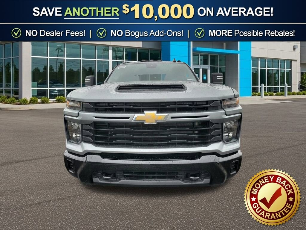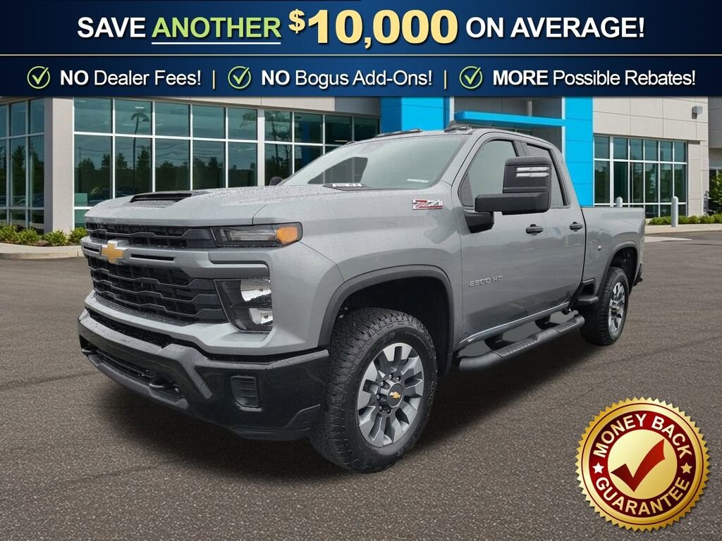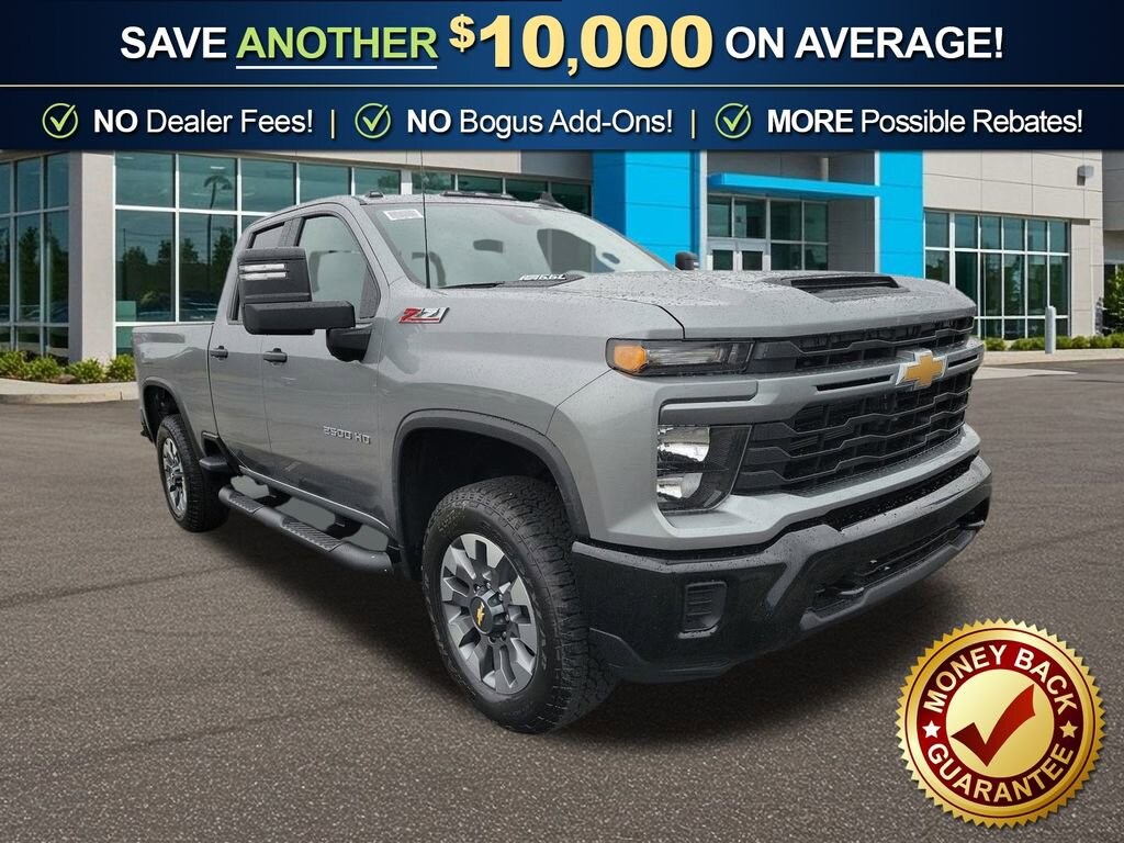 Dealer Discount of $2,687 off MSRP Sterling Gray Metallic 2026 Chevrolet Silverado 2500HD Custom NCT 4WD 10-Speed Automatic 6.6L V8 10-Speed Automatic, 4WD, Jet Black Cloth, 10-Way Power Driver Seat Adjuster with Lumbar, 120-Volt Bed Mounted Power Outlet, 120-Volt Interior Power Outlet, 170 Amp Alternator, 2-Speed Electronic Shift Transfer Case, 3.5 Diagonal Monochromatic Display DIC, 3.73 Rear Axle Ratio, 4-Wheel Disc Brakes, 4 Round Black Assist Steps, 6 Speakers, 6-Speaker Audio System, 720 Cold-Cranking Amps Heavy-Duty Battery, ABS brakes, Air Conditioning, Alloy wheels, AM/FM radio: SiriusXM with 360L, Apple CarPlay/Android Auto, Auto High-beam Headlights, Black Mirror Caps, Bluetooth® For Phone, Brake assist, Chevrolet Connected Access Capable, Cloth Seat Trim, Color-Keyed Carpeting Floor Covering, Compass, Custom Convenience Package, Deep-Tinted Glass, Delay-off headlights, Driver door bin, Dual front impact airbags, Dual front side impact airbags, Dual Rear USB Ports (charge Only), Durabed Pickup Bed, Electric Rear-Window Defogger, Electronic Cruise Control with Set and Resume Speed, Electronic Stability Control, Emergency communication system: OnStar, EZ Lift Power Lock and Release Tailgate, Front 40/20/40 Split-Bench Seats with Lockable Storage, Front anti-roll bar, Front Center Armrest w/Storage, Front reading lights, Front Rubberized Vinyl Floor Mats, Front wheel independent suspension, Fully automatic headlights, HD Rear Vision Camera, Heated door mirrors, Heated Vertical Trailering Mirrors, Hill Descent Control, Illuminated entry, LED Cargo Area Lighting, LED Smoked Amber Roof Marker Lamps, Locking Tailgate, Low tire pressure warning, Manual Tailgate Function with No EZ Lift, Manual Tilt-Wheel Steering Column, Multi-Flex Tailgate, Occupant sensing airbag, Off-Road Suspension, OnStar Services Capable, Outside temperature display, Overhead airbag, Overhead console, Panic alarm, Passenger door bin, Passenger vanity mirror, Power Door Locks, Power door mirrors, Power Front Windows with Driver Express Up/Down, Power Front Windows with Passenger Express Down, Power Rear Windows with Express Down, Power steering, Power windows, Preferred Equipment Group 1CX, Premium audio system: Chevrolet Infotainment 3, Push Button Start, Radio: Chevrolet Infotainment 3 System, Rear 60/40 Folding Bench Seat (folds Up), Rear reading lights, Rear Rubberized Vinyl Floor Mats, Rear step bumper, Remote Keyless Entry, Remote keyless entry, Remote Vehicle Starter System, SiriusXM with 360L Trial Subscription, Speed control, Split folding rear seat, Standard Tailgate, Suspension Package, Tachometer, Tilt steering wheel, Traction control, Trip computer, Turn signal indicator mirrors, Unauthorized Entry Theft-Deterrent System, Variably intermittent wipers, Voltmeter, Wheels: 20 10-Spoke Machined Aluminum, Wi-Fi Hotspot Capable, Wireless Phone Projection, Z71 Off-Road Package, 10-Speed Automatic, 4WD, Jet Black Cloth. Price includes: $1000 - Chevrolet Consumer Cash Program. Exp. 03/02/2026