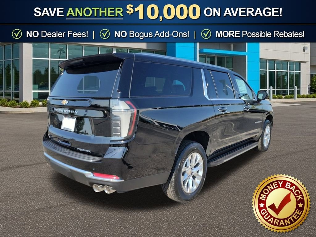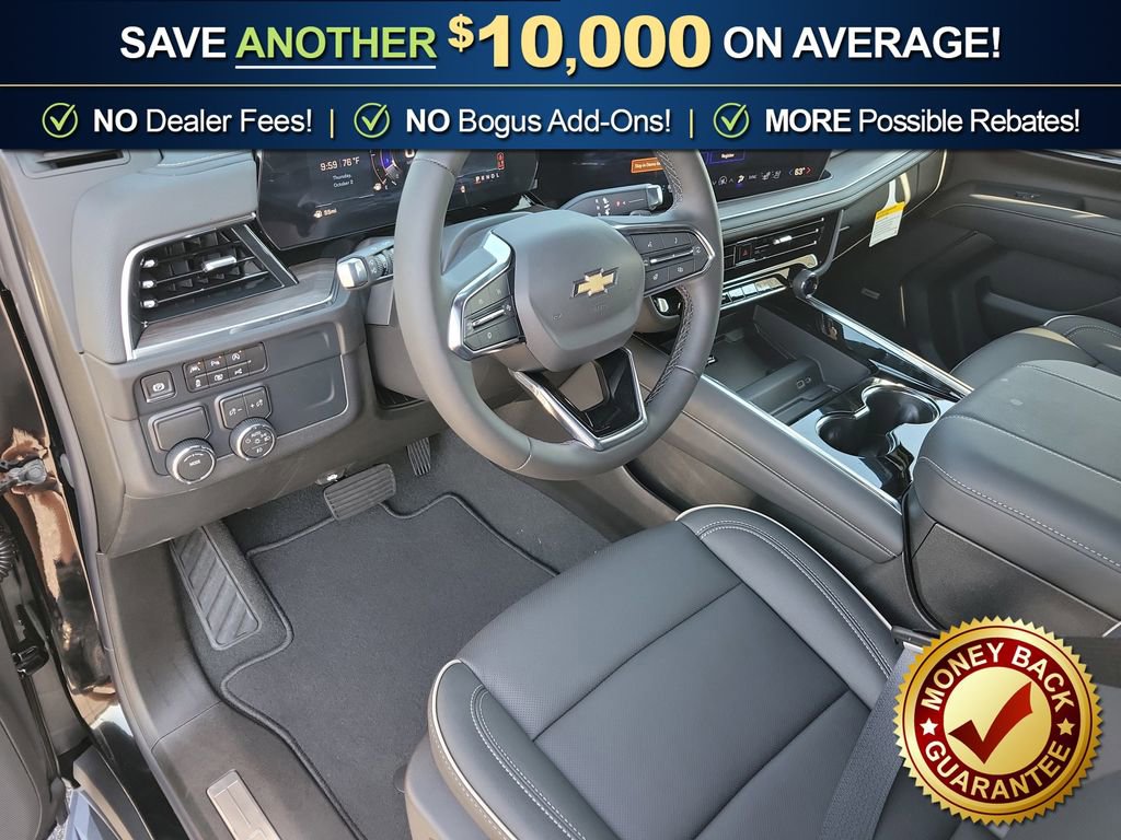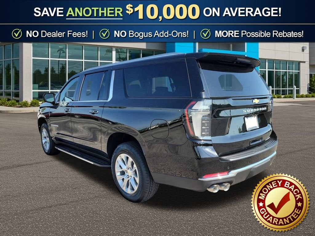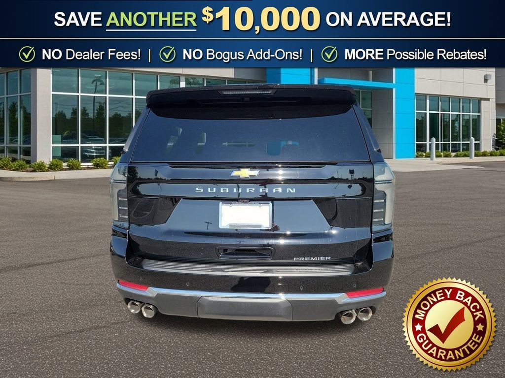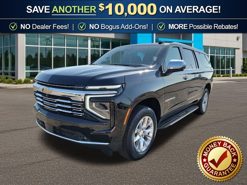 Dealer Discount of $4,586 off MSRP Black 2026 Chevrolet Suburban Premier fctp RWD 10-Speed Automatic with Overdrive EcoTec3 5.3L V8 10 Speakers, 20 x 9 Polished Aluminum Wheels, 3.23 Rear Axle Ratio, 3rd Row 60/40 Power-Folding Split-Bench, 3rd row seats: split-bench, 4-Way Power Driver Lumbar Seat Adjuster, 4-Way Power Front Passenger Lumbar Seat Adjuster, 4-Wheel Disc Brakes, 8-Way Power Driver Seat Adjuster, 8-Way Power Front Passenger Seat Adjuster, ABS brakes, Adaptive suspension, Air Conditioning, Alloy wheels, AM/FM radio: SiriusXM with 360L, Apple CarPlay/Android Auto, Auto High-beam Headlights, Auto-dimming door mirrors, Auto-Dimming Inside Rear-View Mirror, Auto-dimming Rear-View mirror, Auto-leveling suspension, Automatic temperature control, Bose 10-Speaker Surround with CenterPoint, Brake assist, Bright Front and Rear Door Sill Plates, Bumpers: body-color, Chrome Door Handles with Body-Color Strip, Chrome Mirror Caps, Compass, Delay-off headlights, Driver door bin, Driver vanity mirror, Dual Exhaust System, Dual front impact airbags, Dual front side impact airbags, Electronic Stability Control, Emergency communication system: OnStar Services capable, Exterior Parking Camera Rear, Four wheel independent suspension, Front anti-roll bar, Front Bucket Seats, Front Center Armrest, Front dual zone A/C, Front fog lights, Front LED Fog Lamps, Front reading lights, Fully automatic headlights, Garage door transmitter, Heated 2nd Row Outboard Seats, Heated door mirrors, Heated Driver and Front Passenger Seats, Heated front seats, Heated Power-Adjustable Outside Mirrors, Heated rear seats, Heated Steering Wheel, Heated steering wheel, Illuminated entry, Interior Camera, LED Headlamps with LED Daytime Running Lamps, LED Tail Lamps, Low tire pressure warning, Magnetic Ride Control Suspension, Memory seat, Memory Settings, Navigation system: Google built-in compatibility (select service plan required, terms and limitations apply), Occupant sensing airbag, Outside temperature display, Overhead airbag, Overhead console, Panic alarm, Passenger door bin, Passenger vanity mirror, Perforated Heated and Ventilated Seats, Perforated Leather Seating Surfaces, Power door mirrors, Power driver seat, Power Liftgate, Power passenger seat, Power Release 2nd Row Bucket Seats, Power steering, Power Tilt and Telescopic Steering Column, Power windows, Power-Sliding Center Floor Console, Preferred Equipment Group 1LZ, Radio data system, Radio: 17.7 Diagonal Advanced Color LCD Display, Rain sensing wipers, Rear air conditioning, Rear anti-roll bar, Rear Power Liftgate, Rear reading lights, Rear window defroster, Rear window wiper, Remote keyless entry, Security system, SiriusXM with 360L Trial Subscription, Speed control, Speed-sensing steering, Split folding rear seat, Spoiler, Steering wheel memory, Steering wheel mounted audio controls, Tachometer, Telescoping steering wheel, Tilt steering wheel, Traction control, Trip computer, Turn signal indicator mirrors, Universal Home Remote, Variably intermittent wipers, Ventilated front seats, Voltmeter, Wireless Apple CarPlay/Wireless Android Auto, Wireless Phone Charging.