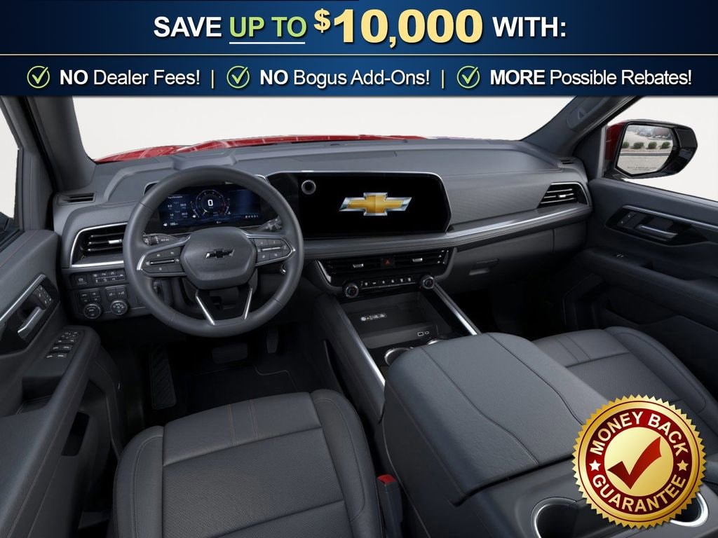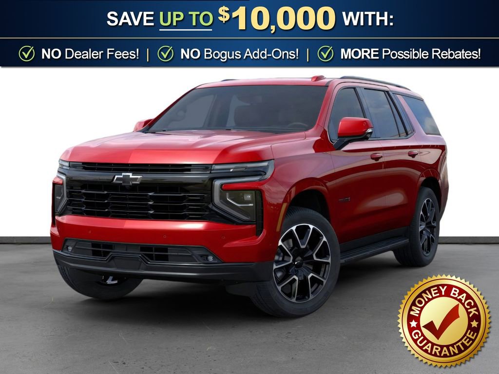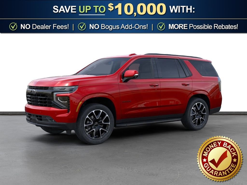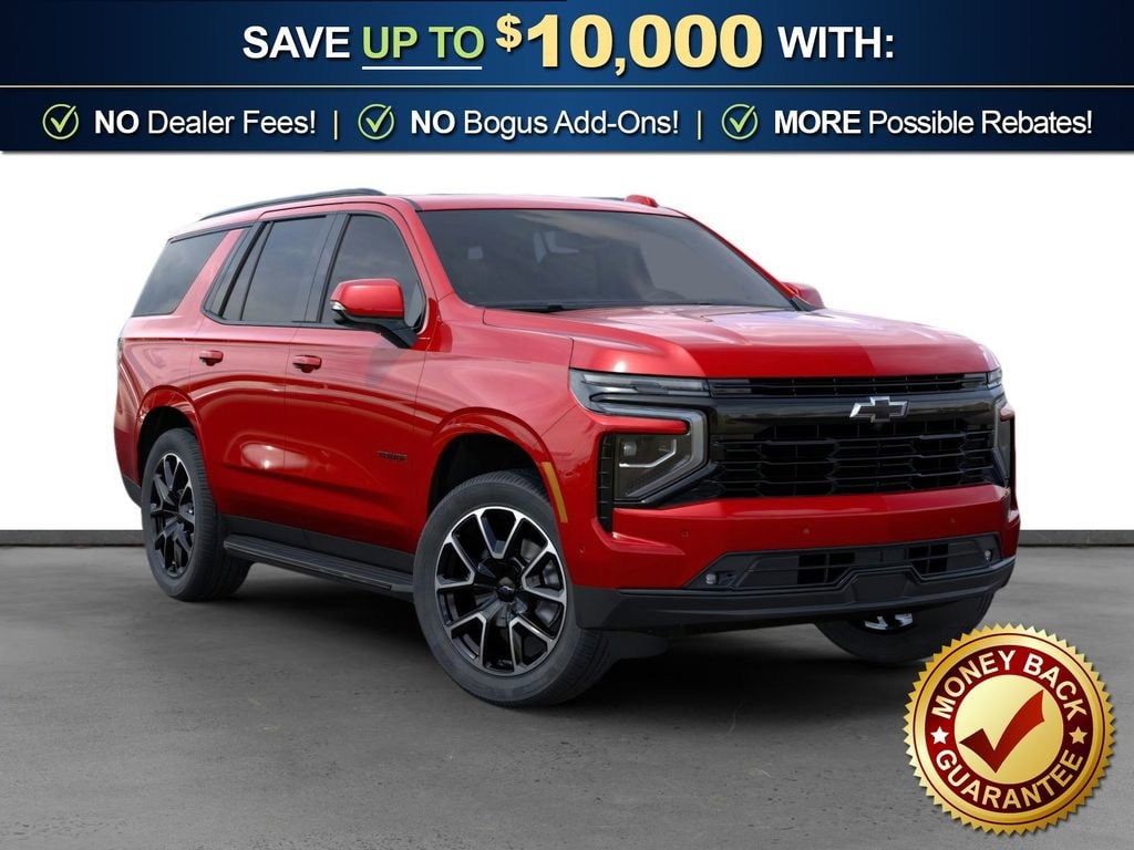 Radiant Red Tintcoat 2026 Chevrolet Tahoe RST NCT 4WD 10-Speed Automatic with Overdrive EcoTec3 5.3L V8 4WD, Jet Black/Victory Red Leather, 1st and 2nd Row Color-Keyed Carpeted Floor Mats, 2-Speed Active Electronic AutoTrac Transfer Case, 2-Way Power Driver Lumbar Seat Adjuster, 2-Way Power Front Passenger Lumbar Seat Adjuster, 2nd Row Power Release 60/40 Split-Folding Bench Seat, 3-Spoke Wrapped Steering Wheel, 3.23 Rear Axle Ratio, 3rd Row 60/40 Power-Folding Split-Bench Seat, 3rd Row Manual 60/40 Split-Folding Bench Seats, 3rd row seats: split-bench, 4-Wheel Disc Brakes, 6 Speakers, 6-Speaker Audio System Feature, 8-Way Power Driver Seat Adjuster, 8-Way Power Front Passenger Seat Adjuster, ABS brakes, Advanced Trailering Package, Air Conditioning, Alloy wheels, AM/FM radio: SiriusXM with 360L, Apple CarPlay/Android Auto, Auto High-beam Headlights, Auto-Dimming Inside Rear-View Mirror, Auto-dimming Rear-View mirror, Automatic temperature control, Blind Zone Steering Assist with Trailering, Bose 10-Speaker Centerpoint Surround Audio System Feature, Brake assist, Bright Front and Rear Door Sill Plates, Bumpers: body-color, Color-Keyed Carpeting Floor Covering, Comfort Package, Compass, Delay-off headlights, Driver door bin, Driver vanity mirror, Dual Exhaust System, Dual front impact airbags, Dual front side impact airbags, Dual-Pane Power Panoramic Sunroof, Electronic Stability Control, Emergency communication system: OnStar and Chevrolet connected services capable, Exterior Parking Camera Rear, Extra Capacity Cooling System, Floor Console with Storage Area, Four wheel independent suspension, Front anti-roll bar, Front Bucket Seats, Front Center Armrest, Front dual zone A/C, Front fog lights, Front LED Fog Lamps, Front reading lights, Frontal Driver and Outboard Passenger Airbags, Fully automatic headlights, Garage door transmitter, Heated 2nd Row Outboard Seats, Heated door mirrors, Heated Driver and Front Passenger Seats, Heated front seats, Heated Steering Wheel, Hill Descent Control, Hitch View with Pan/Zoom Image Adjustment, Illuminated entry, Integrated Trailer Brake Controller, Interior Camera, Key Card, LED Headlamps with LED Daytime Running Lamps, LED Tail Lamps, Low tire pressure warning, Max Trailering Package, Memory seat, Memory Settings, Memory Settings For Driver, Navigation system: Google built-in compatibility (select service plan required, terms and limitations apply), Occupant sensing airbag, Outside Heated Power-Adjustable Mirrors, Outside temperature display, Overhead airbag, Overhead console, Panic alarm, Passenger door bin, Passenger vanity mirror, Perforated Leather Seat Trim, Power door mirrors, Power driver seat, Power Liftgate, Power passenger seat, Power Release 2nd Row Bucket Seats, Power steering, Power windows, Preferred Equipment Group 1SP, Premium audio system: Chevrolet Infotainment 3 Premium, Premium Smooth Ride Suspension, Radio data system, Radio: 17.7 Diagonal Advanced Color LCD Display, Rain sensing wipers, Rear air conditioning, Rear anti-roll bar, Rear Power Liftgate, Rear reading lights, Rear seat center armrest, Rear window defroster, Rear window wiper, Remote keyless entry, Remote Start, RST Exterior Features, Security system, Set of 4 Wheel Locks, SiriusXM with 360L Trial Subscription, Smart Trailer Integration Indicator, Speed control, Speed-sensing steering, Split folding rear seat, Spoiler, Steering wheel mounted audio controls, Tachometer, Telescoping steering wheel, Tilt steering wheel, Traction control, Trip computer, Universal Home Remote, USB Ports, Variably intermittent wipers, Voltmeter, Wheels: 22 x 9 Bright Machined, Wireless Phone Charging, 4WD, Jet Black/Victory Red Leather.