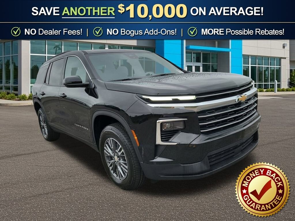 Dealer Discount of $2,586 off MSRP Mosaic Black Metallic 2026 Chevrolet Traverse LT fctp FWD 8-Speed Automatic 2.5L DOHC 3rd row seats: split-bench, 4-Way Manual Front Passenger Seat Adjuster, 4-Wheel Disc Brakes, 6 Speakers, 6-Speaker Audio System Feature, 8-Way Power Driver Seat Adjuster, ABS brakes, Air Conditioning, Alloy wheels, AM/FM radio: SiriusXM with 360L, Apple CarPlay/Android Auto, Auto High-beam Headlights, Automatic temperature control, Brake assist, Bumpers: body-color, Child-Seat-Sensing Airbag, Compass, Delay-off headlights, Driver door bin, Driver vanity mirror, Dual front impact airbags, Dual front side impact airbags, Electronic Stability Control, Emergency communication system: OnStar, Four wheel independent suspension, Front anti-roll bar, Front Bucket Seats, Front Center Armrest, Front dual zone A/C, Front reading lights, Fully automatic headlights, Heated door mirrors, Heated Driver and Front Passenger Seats, Heated front seats, Heated steering wheel, Illuminated entry, Low tire pressure warning, Navigation System, Occupant sensing airbag, Outside temperature display, Overhead airbag, Overhead console, Panic alarm, Passenger door bin, Passenger vanity mirror, Power door mirrors, Power driver seat, Power Liftgate, Power steering, Power windows, Preferred Equipment Group 1LT, Premium Cloth Seat Trim, Radio data system, Radio: : Audio System w/17.7 Diagonal Display, Rear air conditioning, Rear anti-roll bar, Rear reading lights, Rear window defroster, Rear window wiper, Remote keyless entry, Security system, SiriusXM with 360L Trial Subscription, Speed control, Speed-sensing steering, Spoiler, Steering wheel mounted audio controls, Tachometer, Telescoping steering wheel, Tilt steering wheel, Traction control, Trip computer, Turn signal indicator mirrors, Variably intermittent wipers, Voltmeter, Wheels: 18 Grazen Metallic Machined-Face Aluminum.