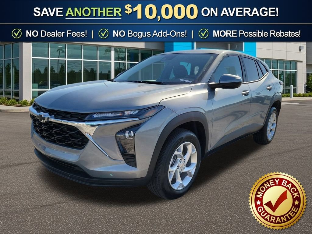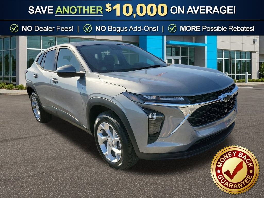 Sterling Gray Metallic 2026 Chevrolet Trax LS NCT FWD 6-Speed Automatic ECOTEC 1.2L Turbo 2-Way Adjustable Front Head Restraints, 3.50 Final Drive Axle Ratio, 4 Speakers, 4-Speaker Audio System Feature, 4-Way Manual Front Passenger Seat Adjuster, 4-Wheel Disc Brakes, 6-Way Manual Driver Seat Adjuster, ABS brakes, Air Conditioning, AM/FM radio: SiriusXM, Auto High-beam Headlights, Body-Color Painted Mirror Caps, Brake assist, Bumpers: body-color, Carpeted Rear Floor Mats, Cloth Seat Trim, Compass, Delay-off headlights, Driver door bin, Driver vanity mirror, Dual front impact airbags, Dual front side impact airbags, Electronic Stability Control, Emergency communication system: OnStar One Essentials, Exterior Parking Camera Rear, Front and Rear Black Bowtie Emblems, Front anti-roll bar, Front Bucket Seats, Front Center Armrest, Front reading lights, Front wheel independent suspension, Fully automatic headlights, Heated Driver and Front Passenger Seats, Heated Power-Adjustable Outside Mirrors, Illuminated entry, Low tire pressure warning, LS Convenience Package, Occupant sensing airbag, Outside temperature display, Overhead airbag, Overhead console, Panic alarm, Passenger door bin, Passenger vanity mirror, Power door mirrors, Power steering, Power windows, Preferred Equipment Group 1LS, Premium audio system: Chevrolet Infotainment 3, Radio data system, Radio: Chevrolet Infotainment 3 System with AM/FM, Rear window defroster, Rear window wiper, Remote keyless entry, Remote Start, Security system, SiriusXM Trial Subscription, Speed control, Split folding rear seat, Spoiler, Steering wheel mounted audio controls, Tachometer, Telescoping steering wheel, Tilt steering wheel, Traction control, Trip computer, Variably intermittent wipers, Wheels: 17 Silver Painted Aluminum, Wheels: 17 Steel with Covers, Wireless Apple CarPlay/Wireless Android Auto.