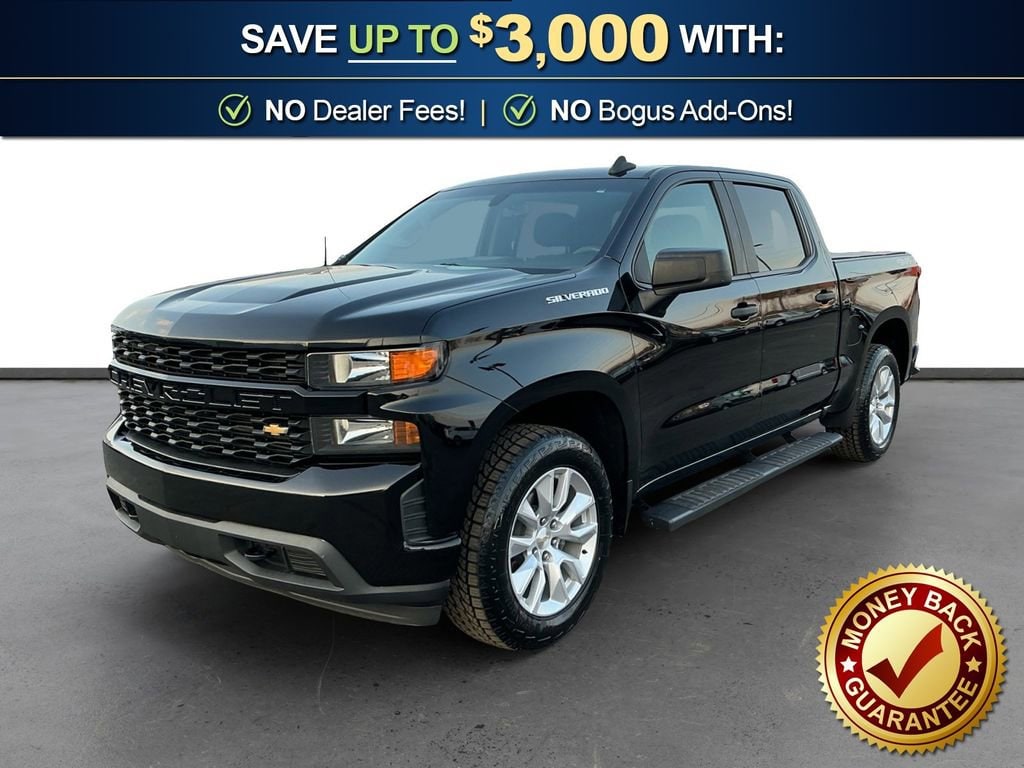 2021 Chevrolet Silverado 1500 Custom Black Custom 4WD 8-Speed Automatic 2.7L Turbo 8-Speed Automatic, 4WD, Black Cloth, 120-Volt Bed Mounted Power Outlet, 120-Volt Instrument Panel Power Outlet, 170 Amp Alternator, 3.42 Rear Axle Ratio, 3.5 Diagonal Monochromatic Display, 4-Wheel Disc Brakes, 40/20/40 Front Split Bench Seat, 4G LTE Wi-Fi Hot Spot Capable, 6 Speakers, ABS brakes, Air Conditioning, All-Weather Floor Liner (LPO), Alloy wheels, AM/FM radio: SiriusXM, Apple CarPlay/Android Auto, Bluetooth® For Phone, Body Color Grille, Brake assist, Bumpers: body-color, Chevrolet Connected Access Capable, Cloth Seat Trim, Color-Keyed Carpeting Floor Covering, Compass, Custom Convenience Package, Custom Value Package, Deep-Tinted Glass, Delay-off headlights, Driver door bin, Driver vanity mirror, Dual front impact airbags, Dual front side impact airbags, Electric Rear-Window Defogger, Electronic Cruise Control, Electronic Stability Control, EZ Lift Power Lock & Release Tailgate, Front anti-roll bar, Front Center Armrest w/Storage, Front Frame-Mounted Black Recovery Hooks, Front License Plate Kit, Front reading lights, Front Rubberized Vinyl Floor Mats, Front wheel independent suspension, Fully automatic headlights, Heated door mirrors, Heavy Duty Suspension, Hitch Guidance, Illuminated entry, Infotainment Package, LED Cargo Area Lighting, Low tire pressure warning, Manual Tilt Wheel Steering Column, Multi-Flex Tailgate, Occupant sensing airbag, OnStar & Chevrolet Connected Services Capable, Outside temperature display, Overhead airbag, Overhead console, Panic alarm, Passenger door bin, Passenger vanity mirror, Polished Exhaust Tip, Power Door Locks, Power door mirrors, Power Front Windows w/Driver Express Up/Down, Power Front Windows w/Passenger Express Down, Power Rear Windows w/Express Down, Power steering, Power windows, Preferred Equipment Group 1CX, Premium audio system: Chevrolet Infotainment 3, Radio data system, Radio: Chevrolet Infotainment 3 System, Rear 60/40 Folding Bench Seat (Folds Up), Rear reading lights, Rear Rubberized-Vinyl Floor Mats, Rear step bumper, Rear window defroster, Remote Keyless Entry, Remote keyless entry, Remote Vehicle Starter System, Security system, Single-Zone Manual/Semi-Automatic Air Conditioning, SiriusXM Radio, Speed control, Speed-sensing steering, Split folding rear seat, Standard Tailgate, Tachometer, Theft Deterrent System (Unauthorized Entry), Tilt steering wheel, Traction control, Trailering Package, Trip computer, Variably intermittent wipers, Voltmeter, Wheel Locks (Set of 4) (LPO), Wheels: 20 x 9 Bright Silver Painted Aluminum, 8-Speed Automatic, 4WD, Black Cloth.