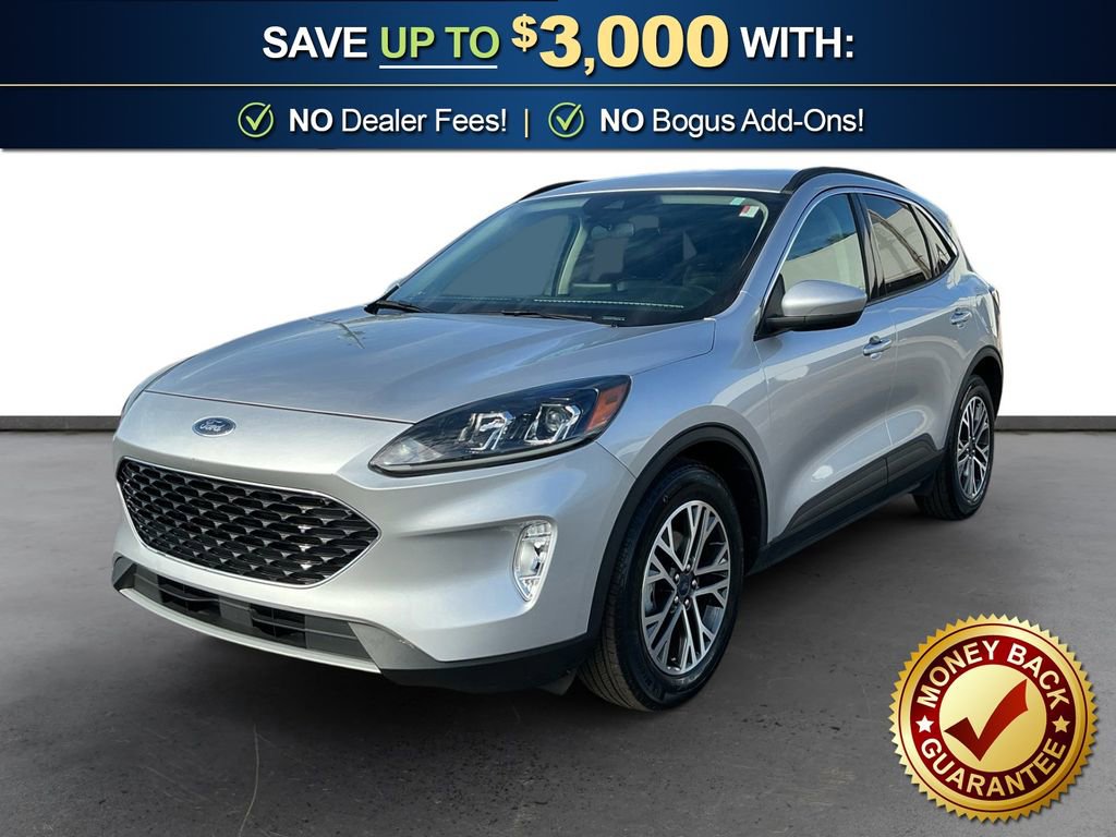 2020 Ford Escape SEL Ingot Silver SEL FWD 8-Speed Automatic 1.5L EcoBoost 18 Machined-Face Aluminum Wheels, 3.52 Axle Ratio, 4-Wheel Disc Brakes, 6 Speakers, ABS brakes, Air Conditioning, Alloy wheels, AM/FM radio: SiriusXM, AM/FM Stereo, Auto High-beam Headlights, Automatic temperature control, Brake assist, Bumpers: body-color, Compass, Delay-off headlights, Driver door bin, Driver vanity mirror, Dual front impact airbags, Dual front side impact airbags, Electronic Stability Control, Emergency communication system: SYNC 3 911 Assist, Equipment Group 301A, Exterior Parking Camera Rear, FordPass Connect, Four wheel independent suspension, Front anti-roll bar, Front Bucket Seats, Front Center Armrest, Front fog lights, Front reading lights, Fully automatic headlights, Heated ActiveX Front Sport Contour Bucket Seats, Heated door mirrors, Heated front seats, Heated steering wheel, Illuminated entry, Knee airbag, Leather steering wheel, Low tire pressure warning, Memory seat, Occupant sensing airbag, Outside temperature display, Overhead airbag, Overhead console, Panic alarm, Passenger door bin, Passenger vanity mirror, Power door mirrors, Power driver seat, Power Liftgate, Power steering, Power windows, Radio data system, Rear anti-roll bar, Rear reading lights, Rear seat center armrest, Rear window defroster, Rear window wiper, Remote keyless entry, Speed control, Speed-sensing steering, Speed-Sensitive Wipers, Split folding rear seat, Spoiler, Steering wheel mounted audio controls, SYNC 3 Communications & Entertainment System, Tachometer, Telescoping steering wheel, Tilt steering wheel, Traction control, Trip computer, Variably intermittent wipers.