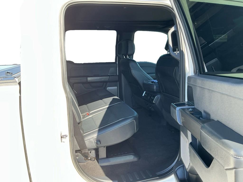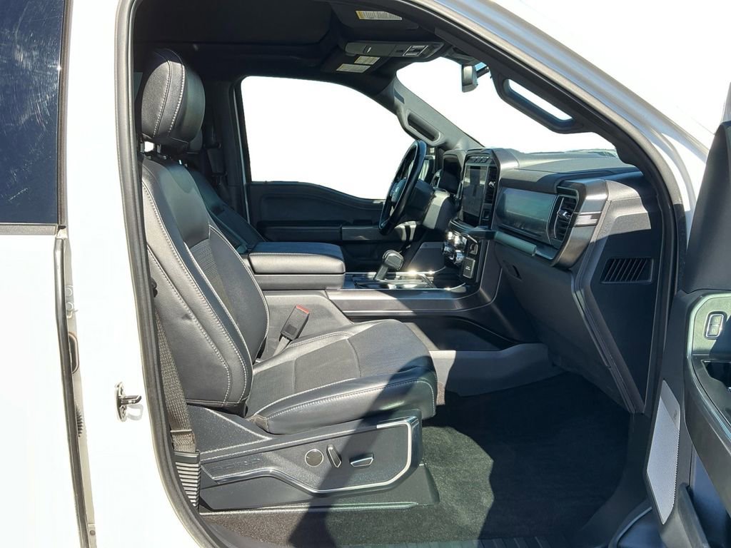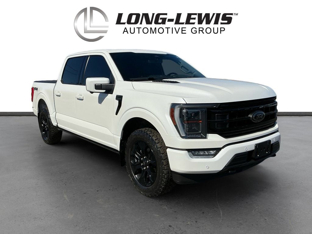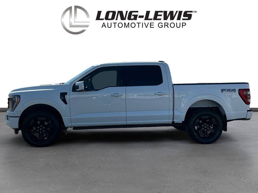 2023 Ford F-150 Lariat Star White Metallic Tri-Coat Lariat 4WD 10-Speed Automatic 3.5L V6 EcoBoost 4WD, 360 Degree Camera, 4-Wheel Disc Brakes, 8 Speakers, ABS brakes, Accent-Color Angular Step Bars, Adjustable pedals, Air Conditioning, Alloy wheels, AM/FM radio: SiriusXM with 360L, Auto High-beam Headlights, Auto Start-Stop Removal (DISC), Auto-dimming door mirrors, Auto-dimming Rear-View mirror, Automatic temperature control, Bed Utility Package, Body-Color Front & Rear Bumpers, Box Side Decals, BoxLink, Brake assist, Bumpers: chrome, Chrome Single-Tip Exhaust, Chrome wheels, Class IV Trailer Hitch Receiver, Compass, Connected Built-In Navigation, Dark 2-Bar & 1 Minor Bar Style Grille, Delay-off headlights, Driver door bin, Driver vanity mirror, Dual front impact airbags, Dual front side impact airbags, Electronic Stability Control, Emergency communication system: SYNC 4 911 Assist, Equipment Group 502A High, Evasive Steering Assist, Extended Range 36 Gallon Fuel Tank, Exterior Parking Camera Rear, Ford Co-Pilot360 Assist 2.0, Front anti-roll bar, Front Bucket Seats, Front Center Armrest, Front dual zone A/C, Front fog lights, Front reading lights, Front wheel independent suspension, Fully automatic headlights, FX4 Off-Road Package, Garage door transmitter, Heated door mirrors, Heated front seats, Heated steering wheel, Illuminated entry, Inclination/Intrusion Sensor Removal, Integrated Trailer Brake Controller, Intelligent Adaptive Cruise Control w/Stop & Go, Interior Work Surface, Intersection Assist, Lariat Sport Appearance Package, Leather-Trimmed Bucket Seats, LED Box Lighting, LED Sideview Mirror Spotlights, Low tire pressure warning, Memory seat, Occupant sensing airbag, Outside temperature display, Overhead airbag, Overhead console, Panic alarm, Partitioned Lockable Fold-Flat Storage, Passenger door bin, Passenger vanity mirror, Pedal memory, Power door mirrors, Power driver seat, Power passenger seat, Power steering, Power Tailgate, Power windows, Pro Trailer Backup Assist & Pro Trailer Hitch Assist, Radio data system, Radio: B&O Sound System by Bang & Olufsen, Rear reading lights, Rear seat center armrest, Rear step bumper, Rear window defroster, Remote keyless entry, Security system, Speed control, Speed Sign Recognition, Speed-sensing steering, Split folding rear seat, Steering Wheel Heat Removal (DISC), Steering wheel mounted audio controls, SYNC 4 w/Enhanced Voice Recognition, Tachometer, Tailgate Step w/Tailgate Work Surface, Telescoping steering wheel, Tilt steering wheel, Tough Bed Spray-In Bedliner, Traction control, Trailer Tow Package, Tray Style Floor Liner (47W), Trip computer, Turn signal indicator mirrors, Twin Panel Moonroof, Variably intermittent wipers, Ventilated front seats, Voltmeter, Wheels: 18 Chrome-Like PVD, Wireless Charging Pad, 4WD.