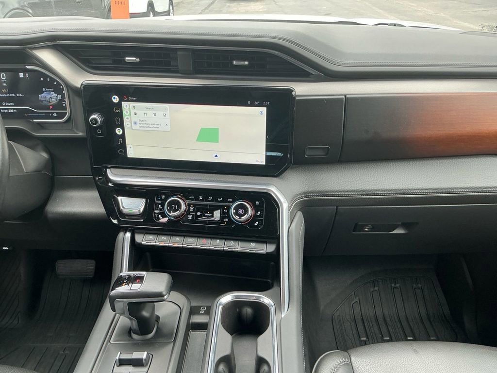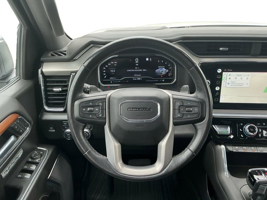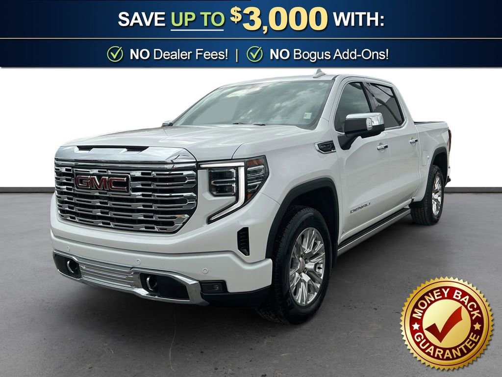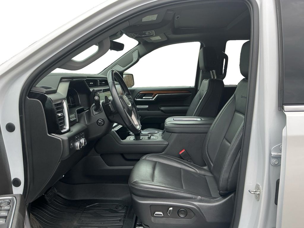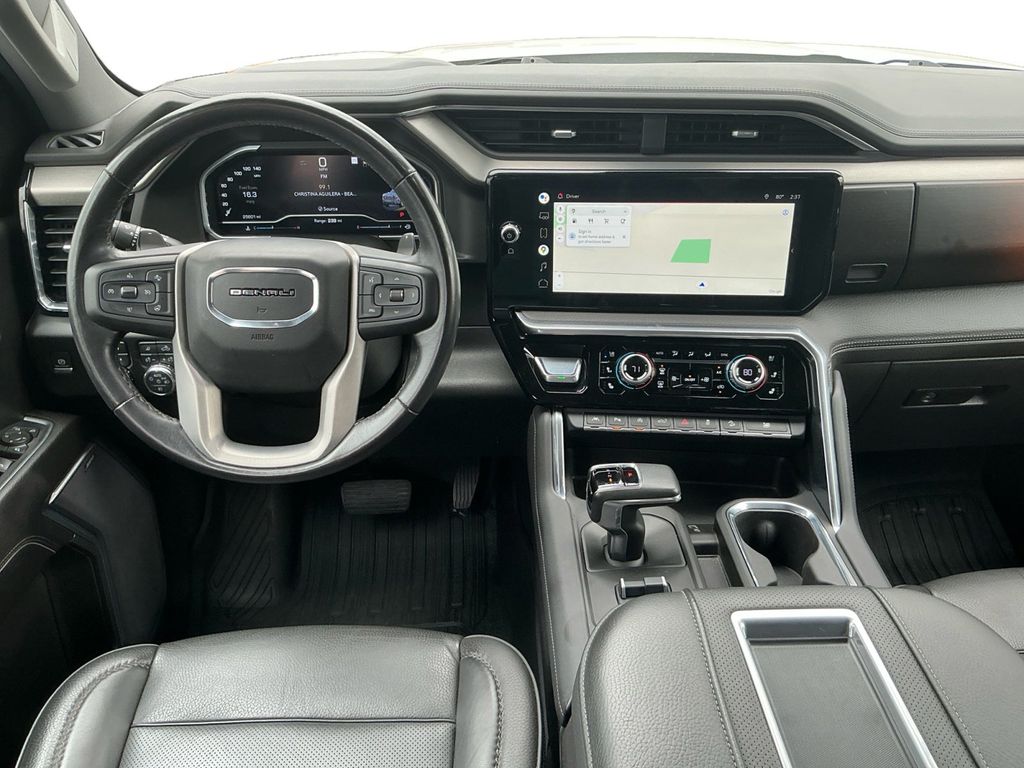 2022 GMC Sierra 1500 Denali White Frost Tricoat Denali 4WD 10-Speed Automatic EcoTec3 5.3L V8 10-Speed Automatic, 4WD, Jet Black Leather, 10-Way Power Driver Seat Adjuster w/Lumbar, 10-Way Power Passenger Seat Adjuster w/Lumbar, 120-Volt Bed Mounted Power Outlet, 120-Volt Instrument Panel Power Outlet, 170 Amp Alternator, 2 Charge/Data USB Ports Inside Center Console, 2 Type-C Charge-Only Rear USB Ports, 2 USB Ports, 3.23 Rear Axle Ratio, 4-Wheel Disc Brakes, 7 Speakers, ABS brakes, Adaptive Cruise Control, Adaptive suspension, Air Conditioning, Alloy wheels, AM/FM radio: SiriusXM with 360L, Apple CarPlay/Android Auto, Auto High-beam Headlights, Auto-dimming door mirrors, Auto-dimming Rear-View mirror, Auto-Locking Rear Differential, Automatic Emergency Braking, Automatic temperature control, Auxiliary External Transmission Oil Cooler, Bed View Camera, Brake assist, Buckle to Drive, Bumpers: body-color, Chrome Header w/Signature Denali Chrome Grille, Chrome Recovery Hooks, Chrome Wheel To Wheel Assist Steps, Color-Keyed Carpeting Floor Covering, Compass, Deep-Tinted Glass, Delay-off headlights, Denali Premium Suspension w/Adaptive Ride Control, Driver door bin, Driver Memory, Driver vanity mirror, Dual front impact airbags, Dual front side impact airbags, Electric Rear-Window Defogger, Electrical Steering Column Lock, Electronic Stability Control, Emergency communication system: OnStar and GMC Connected Services capable, Floor-Mounted Center Console, Following Distance Indicator, Forge Perforated Leather Seat Trim, Forward Collision Alert, Front anti-roll bar, Front Bucket Seats, Front Center Armrest, Front dual zone A/C, Front fog lights, Front Pedestrian Braking, Front Rainsensing Wipers, Front reading lights, Front wheel independent suspension, Fully automatic headlights, Garage door transmitter, Genuine wood console insert, Genuine wood dashboard insert, Genuine wood door panel insert, GMC Connected Access Capable, GMC MultiPro Power Steps, HD Surround Vision, Heated 2nd Row Outboard Seats, Heated door mirrors, Heated Driver & Front Outboard Passenger Seating, Heated front seats, Heated rear seats, Heated Steering Wheel, Heated steering wheel, Heavy-Duty Air Filter, Hill Descent Control, Hitch Guidance, Hitch Guidance w/Hitch View, Illuminated entry, In-Vehicle Trailering App, Integrated Trailer Brake Controller, IntelliBeam Automatic High Beam On/Off, Keyless Open & Start, Lane Keep Assist w/Lane Departure Warning, LED Cargo Area Lighting, Low tire pressure warning, Memory seat, Multicolor 15 Diagonal Head-Up Display, Navigation System, Not Equipped w/Dynamic Fuel Management, Not Equipped w/Front & Rear Park Assist, Not Equipped w/Steering Column Lock, Occupant sensing airbag, OnStar & GMC Connected Services Capable, Outside temperature display, Overhead airbag, Overhead console, Panic alarm, Passenger door bin, Passenger vanity mirror, Perimeter Lighting, Power Door Locks, Power door mirrors, Power driver seat, Power Front Passenger Windows w/Express Up/Down, Power Front Windows w/Driver Express Up/Down, Power passenger seat, Power Rake & Telescoping Steering Column, Power Rear Windows w/Express Down, Power Sliding Rear Window w/Rear Defogger, Power steering, Power Sunroof, Power windows, Preferred Equipment Group 5SA, Premium audio system: GMC Infotainment System, Premium Bose 7-Speaker Sound System, Push Button Start, Radio data system, Radio: Premium GMC Infotainment Audio System, Rain sensing wipers, Rear Camera Mirror, Rear Cross Traffic Braking, Rear Pedestrian Detection, Rear reading lights, Rear seat center armrest, Rear step bumper, Rear Wheelhouse Liners, Rear window defroster, Remote keyless entry, Remote Vehicle Starter System, Safety Alert Seat, Security system, SiriusXM w/360L, Speed control, Speed-sensing steering, Split folding rear seat, Spray-On Pickup Bed Liner w/Denali Logo, Steering Wheel Audio Controls, Steering wheel mounted audio controls, Tachomet
