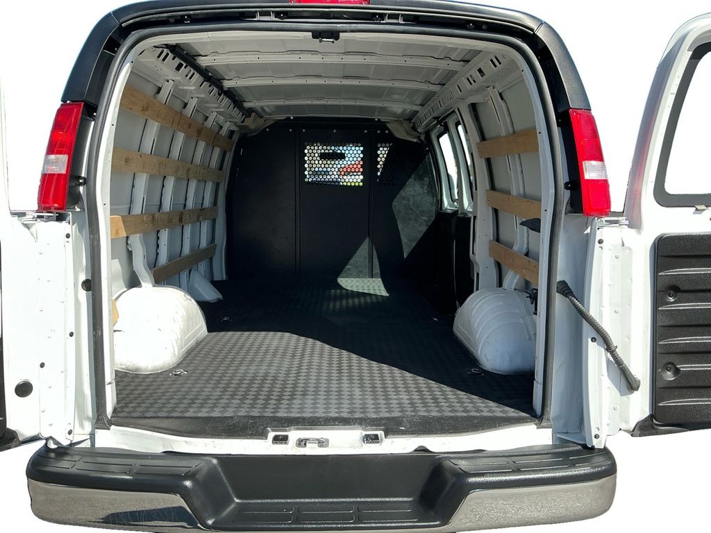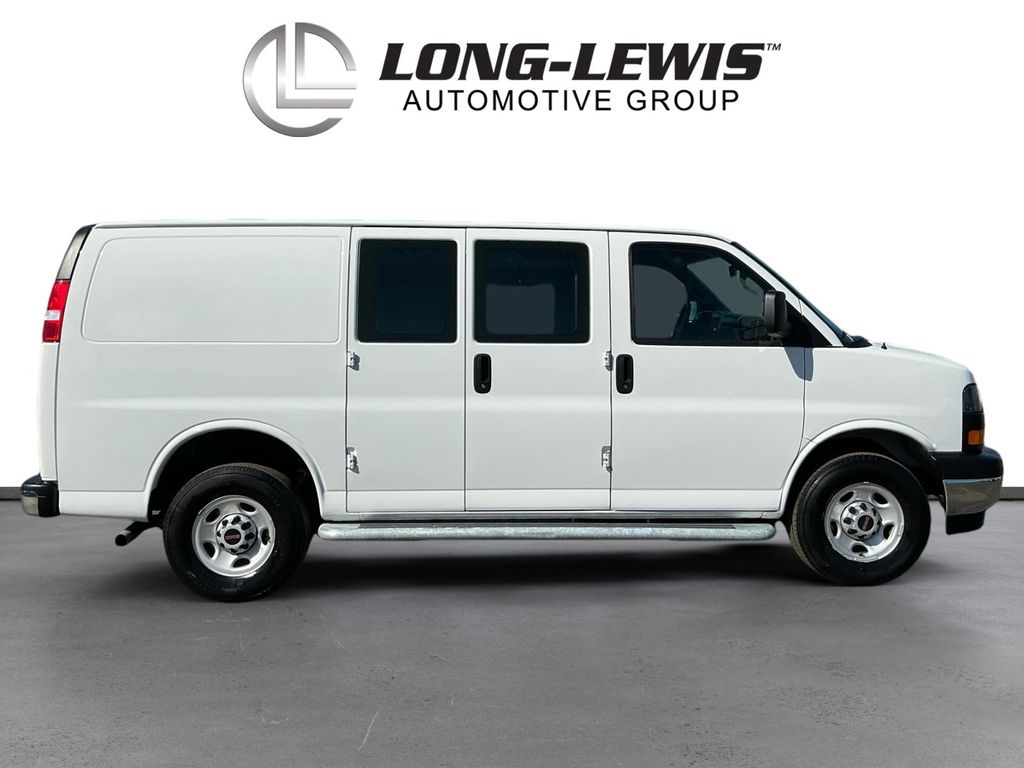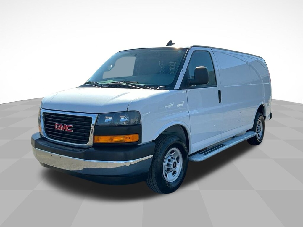 2024 GMC Savana 2500 Work Van Summit White Work Van RWD 8-Speed Automatic with Overdrive 4.3L V6 16 x 6.5 Steel Wheels, 2 Speakers, 3.42 Rear Axle Ratio, 4-Wheel Disc Brakes, ABS brakes, Air Conditioning, AM/FM radio, AM/FM Stereo w/MP3 Player, Black Rubberized-Vinyl Front Only Floor Covering, Chrome Appearance Package, Chrome Grille, Cruise Control, Delay-off headlights, Driver & Front Passenger High-Back Bucket Seats, Driver Convenience Package, Driver door bin, Driver's Seat Mounted Armrest, Dual front impact airbags, Dual front side impact airbags, Electronic Stability Control, Emergency communication system: OnStar and GMC connected services capable, Engine Cover Console w/Swing-Out Storage Bin, Fixed Rear Door Window Glass, Fixed Rear Side Door Window Glass, Front & Rear Chrome Bumpers w/Step-Pad, Front anti-roll bar, Front Bucket Seats, Front Reclining High-Back Bucket Seats, Front wheel independent suspension, Full-Length Black Rubberized-Vinyl Floor Covering, Fully automatic headlights, Heated door mirrors, Low tire pressure warning, Occupant sensing airbag, Overhead airbag, Passenger cancellable airbag, Passenger door bin, Passenger seat mounted armrest, Power door mirrors, Power steering, Power windows, Preferred Equipment Group 1WT, Rear & Side Cargo Door Glass, Rear Side Door Glass Window Security Bar, Reclining Front Bucket Seats w/Inboard Armrests, Single-Zone Manual Air Conditioning, Tachometer, Tilt Steering Wheel, Traction control, Trip computer, Variably intermittent wipers, Vinyl Seat Trim, Voltmeter.