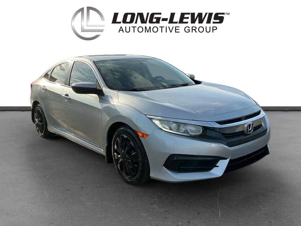 Priced below KBB Fair Purchase Price!2016 Honda Civic LX Silver LX FWD CVT 2.0L I4 DOHC 16V i-VTEC Cloth, 16 Wheels w/Full Covers, 4 Speakers, 4-Wheel Disc Brakes, ABS brakes, Air Conditioning, AM/FM radio, Automatic temperature control, Brake assist, Bumpers: body-color, Cloth Seat Trim, Compass, Delay-off headlights, Driver door bin, Driver vanity mirror, Dual front impact airbags, Dual front side impact airbags, Electronic Stability Control, Exterior Parking Camera Rear, Four wheel independent suspension, Front anti-roll bar, Front Bucket Seats, Front Center Armrest, Front reading lights, Fully automatic headlights, Illuminated entry, Low tire pressure warning, Occupant sensing airbag, Outside temperature display, Overhead airbag, Panic alarm, Passenger door bin, Passenger vanity mirror, Power door mirrors, Power steering, Power windows, Radio data system, Radio: 160-Watt AM/FM Audio System, Rear anti-roll bar, Rear window defroster, Reclining Front Bucket Seats, Remote keyless entry, Security system, Speed control, Speed-sensing steering, Steering wheel mounted audio controls, Tachometer, Telescoping steering wheel, Tilt steering wheel, Traction control, Cloth.31/41 City/Highway MPGAwards:* 2016 IIHS Top Safety Pick+ (When equipped with honda sensing) * NACTOY 2016 North American Car of the Year * 2016 KBB.com Brand Image AwardsKelley Blue Book Brand Image Awards are based on the Brand Watch(tm) study from Kelley Blue Book Market Intelligence. Award calculated among non-luxury shoppers. For more information, visit www.kbb.com. Kelley Blue Book is a registered trademark of Kelley Blue Book Co., Inc.