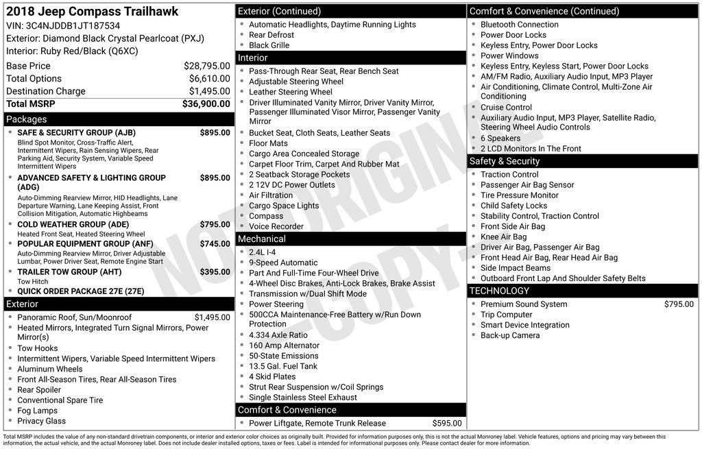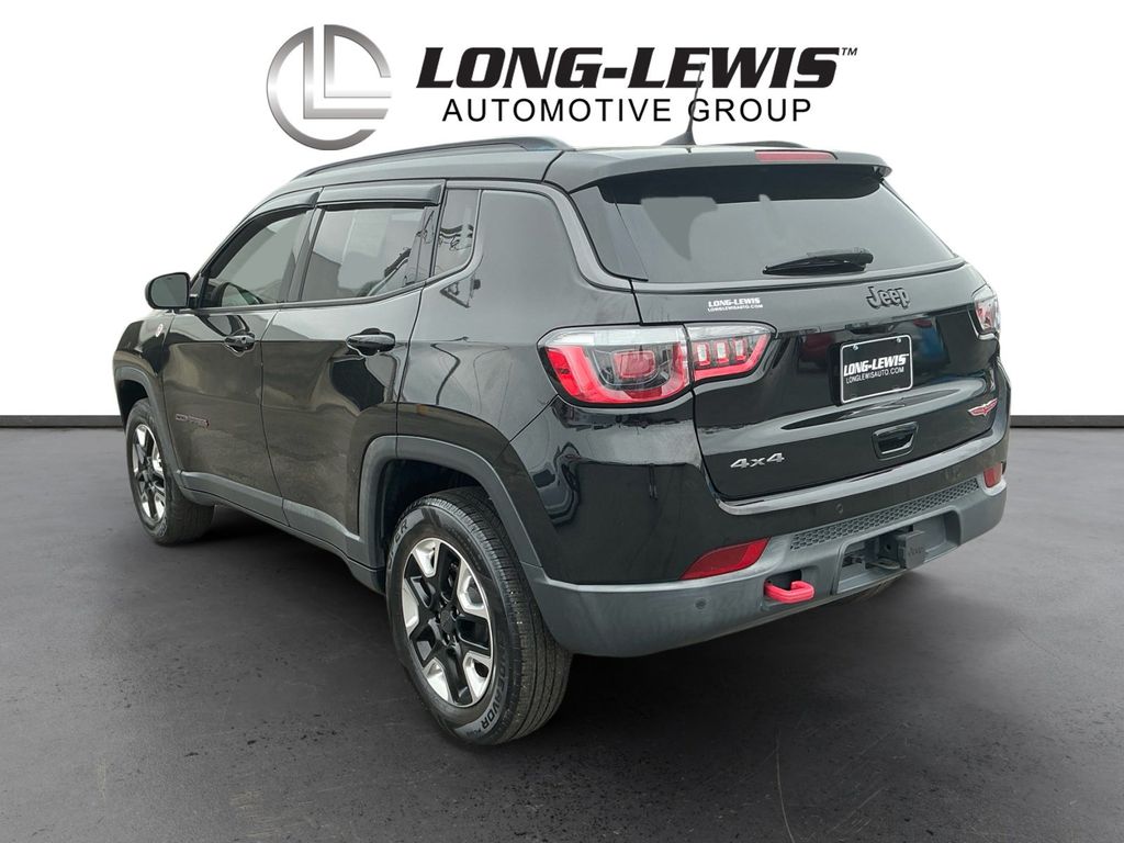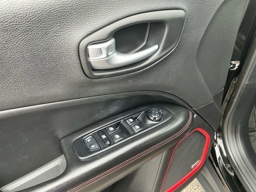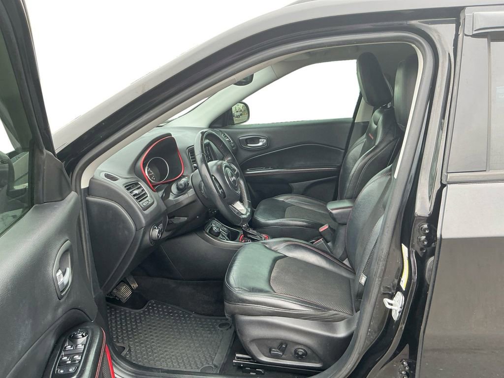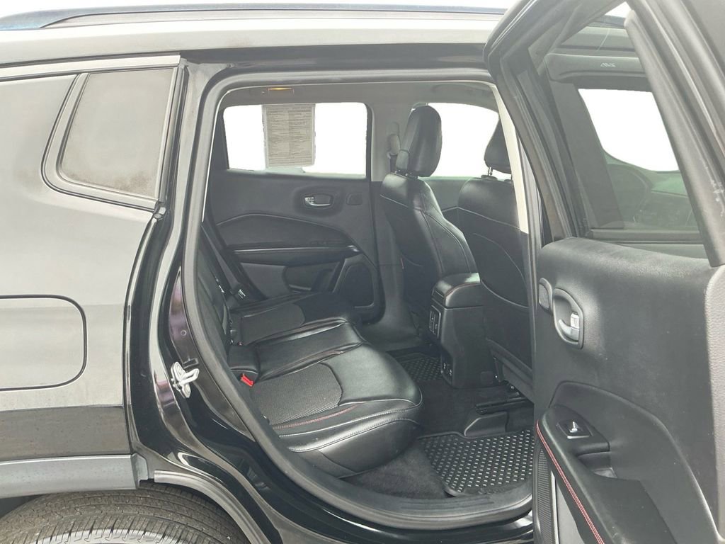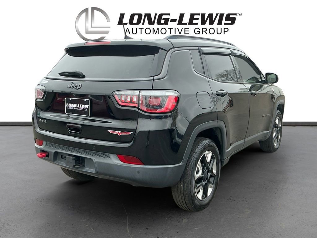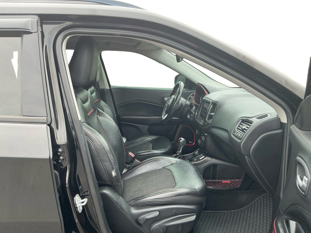 2018 Jeep Compass Trailhawk Diamond Black Crystal Pearlcoat Trailhawk 4WD 9-Speed Automatic 2.4L I4 4WD, 4-Way Power Lumbar Adjust, 4-Wheel Disc Brakes, 4.334 Axle Ratio, 6 Speakers, 7 & 4 Pin Wiring Harness, ABS brakes, Advanced Safety & Lighting Group, Air Conditioning, Alloy wheels, AM/FM radio: SiriusXM, Anti-whiplash front head restraints, Apple CarPlay/Android Auto, Auto High Beam Headlamp Control, Auto-Dimming Rear-View Mirror, Automatic temperature control, Beats Premium Audio System, Bi-Xenon High-Intensity Discharge Headlamps, Blind Spot & Cross Path Detection, Brake assist, Bumpers: body-color, Class III Receiver Hitch, Cold Weather Group, Compass, Delay-off headlights, Driver door bin, Driver vanity mirror, Dual front impact airbags, Dual front side impact airbags, Electronic Stability Control, Four wheel independent suspension, Front anti-roll bar, Front Bucket Seats, Front Center Armrest w/Storage, Front dual zone A/C, Front fog lights, Front reading lights, Full Speed FWD Collision Warn Plus, Fully automatic headlights, Heated door mirrors, Heated Front Seats, Heated Steering Wheel, Illuminated entry, Knee airbag, Lane Departure Warning Plus, Leather Shift Knob, Low tire pressure warning, Occupant sensing airbag, Outside temperature display, Overhead airbag, Overhead console, Panic alarm, ParkSense Rear Park Assist System, ParkView Rear Back-Up Camera, Passenger door bin, Passenger vanity mirror, Popular Equipment Group, Power 8-Way Driver/Manual 6-Way Passenger Seats, Power door mirrors, Power Front/Fixed Rear Full Sunroof, Power Liftgate, Power steering, Power windows, Premium Cloth/Leather Trim Bucket Seats, Quick Order Package 27E, Radio: Uconnect 4 w/8.4 Display, Rain Sensitive/Intermittent Wipers, Rear anti-roll bar, Rear seat center armrest, Rear window defroster, Rear window wiper, Remote keyless entry, Remote Start System, Roof rack: rails only, Safe & Security Group, Security Alarm, Speed control, Split folding rear seat, Spoiler, Steering wheel mounted audio controls, Tachometer, Telescoping steering wheel, Tilt steering wheel, Traction control, Trailer Tow Group, Trip computer, Turn signal indicator mirrors, Variably intermittent wipers, Wheels: 17 x 6.5 Polished/Black Pockets Aluminum, Windshield Wiper De-Icer, 4WD.