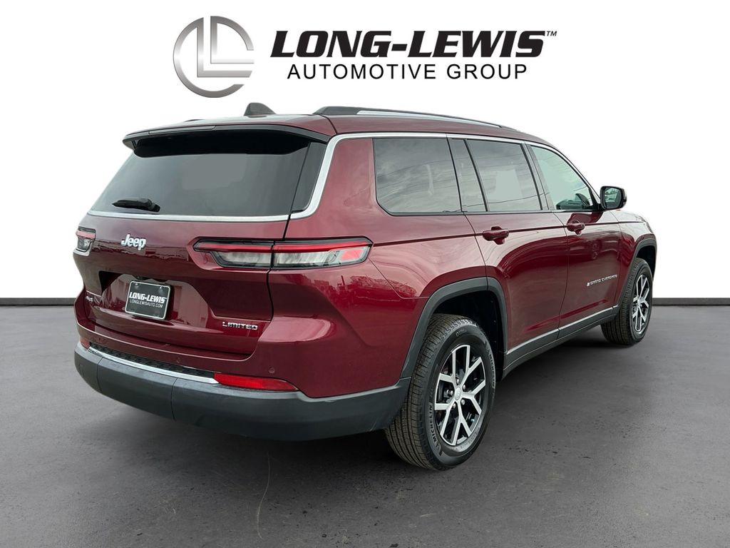 2024 Jeep Grand Cherokee L Limited Velvet Red Pearlcoat Limited 4WD 8-Speed Automatic 3.6L V6 24V VVT 3.45 Rear Axle Ratio, 3rd row seats: split-bench, 4-Wheel Disc Brakes, 6 Speakers, ABS brakes, Active Noise Control System, Air Conditioning, Alloy wheels, AM/FM radio: SiriusXM with 360L, Anti-whiplash front head restraints, Audio memory, Auto High-beam Headlights, Automatic temperature control, Brake assist, Bumpers: body-color, Capri Leatherette Seats, Compass, Delay-off headlights, Driver door bin, Driver vanity mirror, Dual front impact airbags, Dual front side impact airbags, Dual-Pane Panoramic Sunroof, Electronic Stability Control, Emergency communication system, Four wheel independent suspension, Front anti-roll bar, Front Bucket Seats, Front Center Armrest w/Storage, Front dual zone A/C, Front fog lights, Front License Plate Bracket, Front reading lights, Fully automatic headlights, Garage door transmitter, Heated door mirrors, Heated front seats, Heated rear seats, Heated steering wheel, Illuminated entry, Interior Rear Facing Camera, Knee airbag, Low tire pressure warning, Manual Fold Seatbacks, Memory seat, Navigation System, Normal Duty Suspension, Occupant sensing airbag, Outside temperature display, Overhead airbag, Overhead console, Panic alarm, ParkView Rear Back-Up Camera, Passenger door bin, Passenger vanity mirror, Power door mirrors, Power driver seat, Power Liftgate, Power passenger seat, Power steering, Power windows, Quick Order Package 23E, Radio data system, Radio: Uconnect 5 Nav w/10.1 Display, Rear air conditioning, Rear anti-roll bar, Rear reading lights, Rear window defroster, Rear window wiper, Reclining 3rd row seat, Remote keyless entry, Security system, Speed control, Speed-Sensitive Wipers, Split folding rear seat, Spoiler, Steering wheel mounted audio controls, Tachometer, Telescoping steering wheel, Tilt steering wheel, Traction control, Trip computer, Turn signal indicator mirrors, Variably intermittent wipers, Voltmeter, Wheels: 18 x 8.0 Polished/Painted Aluminum.