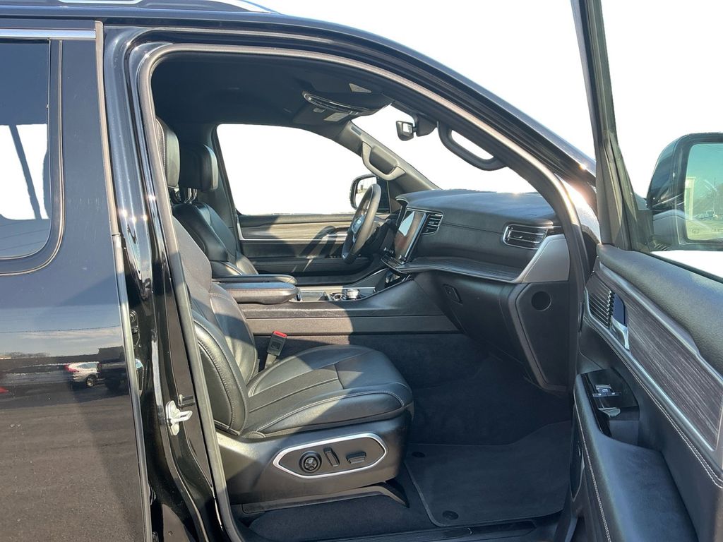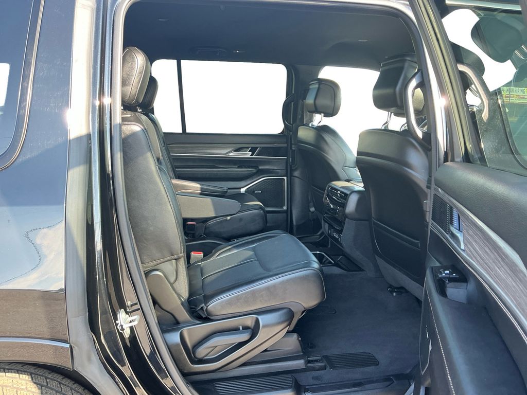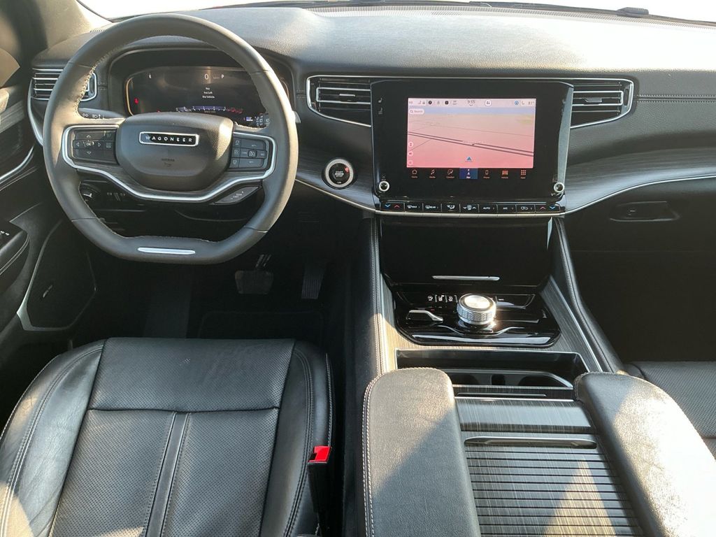 2024 Jeep Wagoneer Series II Diamond Black Crystal Pearlcoat Series II 4WD 8-Speed Automatic 3.0L I6 10 Speakers, 118 MPH Maximum Speed Calibration, 3.55 Rear Axle Ratio, 3rd row seats: bench, 4-Wheel Disc Brakes, ABS brakes, Adjustable pedals, Air Conditioning, Alloy wheels, AM/FM radio: SiriusXM with 360L, Anti-whiplash front head restraints, Apple CarPlay/Android Auto, Audio memory, Auto-dimming door mirrors, Auto-dimming Rear-View mirror, Auto-leveling suspension, Automatic temperature control, Brake assist, Bumpers: body-color, Compass, Delay-off headlights, Driver door bin, Driver vanity mirror, Driver's Seat Mounted Armrest, Dual front impact airbags, Dual front side impact airbags, Electronic Stability Control, Emergency communication system: Wagoneer Connect, Exterior Parking Camera Rear, Four wheel independent suspension, Front anti-roll bar, Front Bucket Seats, Front Center Armrest w/Storage, Front dual zone A/C, Front fog lights, Front reading lights, Fully automatic headlights, Garage door transmitter, Genuine wood console insert, Genuine wood dashboard insert, Genuine wood door panel insert, Heated door mirrors, Heated front seats, Heated rear seats, Heated steering wheel, Illuminated entry, Knee airbag, Leather Trimmed Bucket Seats, Low tire pressure warning, Memory seat, Navigation System, Normal Duty Suspension, Occupant sensing airbag, Outside temperature display, Overhead airbag, Overhead console, Panic alarm, Passenger door bin, Passenger seat mounted armrest, Passenger vanity mirror, Pedal memory, Power adjustable front head restraints, Power door mirrors, Power driver seat, Power Liftgate, Power passenger seat, Power steering, Power windows, Quick Order Package 25J, Radio data system, Radio: Uconnect 5 Nav w/10.1 Display, Rain sensing wipers, Rear air conditioning, Rear anti-roll bar, Rear dual zone A/C, Rear reading lights, Rear seat center armrest, Rear window defroster, Rear window wiper, Reclining 3rd row seat, Remote keyless entry, Security system, Speed control, Speed-sensing steering, Speed-Sensitive Wipers, Split folding rear seat, Steering wheel memory, Steering wheel mounted audio controls, Tachometer, Telescoping steering wheel, Tilt steering wheel, Traction control, Trip computer, Turn signal indicator mirrors, Variably intermittent wipers, Ventilated front seats, Voltmeter, Wheels: 20 x 9.0 Premium 2 Aluminum.