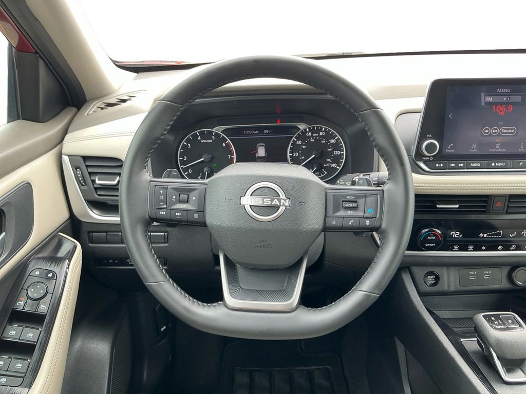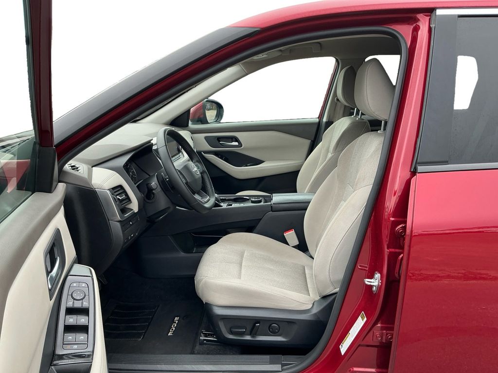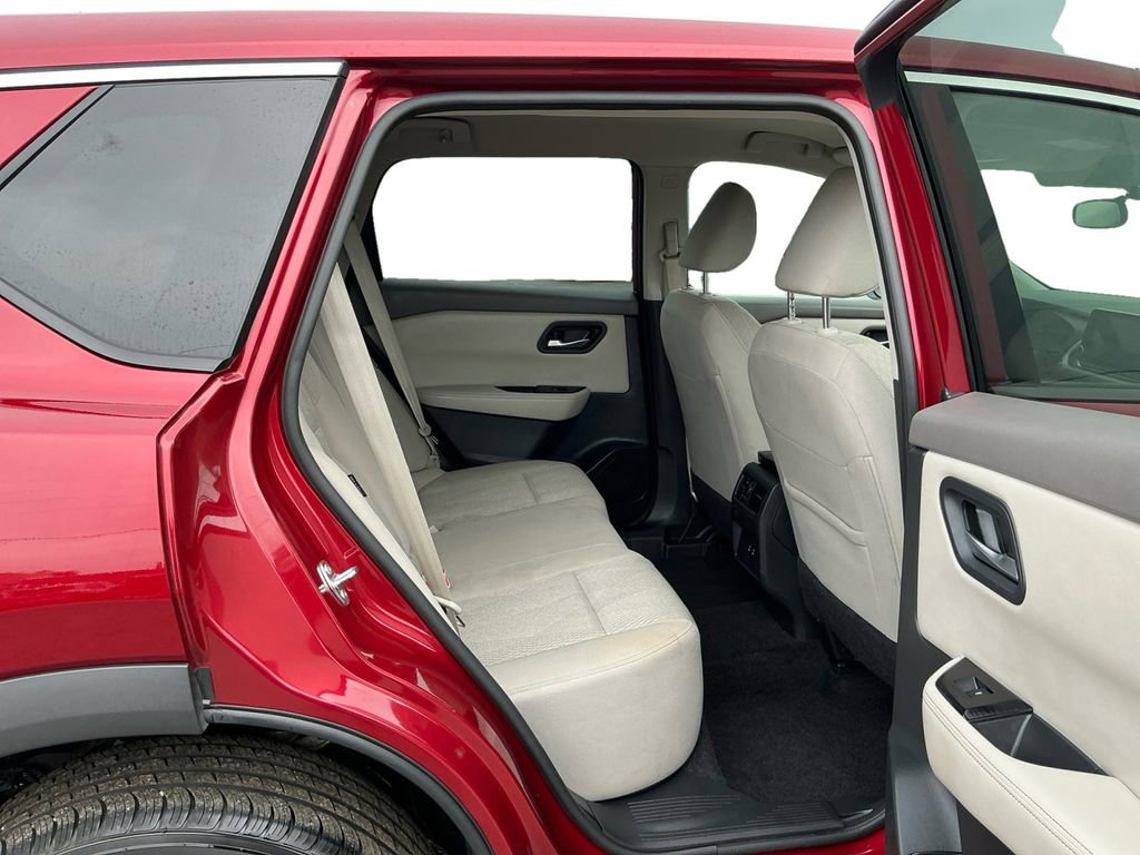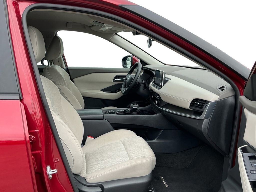 2025 Nissan Rogue SV Scarlet Ember Tintcoat SV AWD CVT with Xtronic 1.5L DOHC AWD, 4-Wheel Disc Brakes, 6 Speakers, ABS brakes, Air Conditioning, Alloy wheels, AM/FM radio: SiriusXM, Android Auto and Apple CarPlay, Auto High-beam Headlights, Automatic temperature control, Brake assist, Bumpers: body-color, Cloth Seat Trim with Patterned Inserts, Delay-off headlights, Driver door bin, Driver vanity mirror, Dual front impact airbags, Dual front side impact airbags, Electronic Stability Control, Emergency communication system: NissanConnect Services, First Aid Kit, Floor Mats with 1-Piece Cargo Area Protector, Four wheel independent suspension, Front anti-roll bar, Front Bucket Seats, Front Bucket Seats with 8-Way Power Driver Seat, Front Center Armrest, Front dual zone A/C, Front reading lights, Fully automatic headlights, Heated door mirrors, Illuminated entry, Knee airbag, Low tire pressure warning, Occupant sensing airbag, Outside temperature display, Overhead airbag, Overhead console, Panic alarm, Passenger door bin, Passenger vanity mirror, Power door mirrors, Power driver seat, Power Liftgate, Power steering, Power windows, Premium Paint, Radio data system, Radio: NissanConnect with 6 Speakers, Rear anti-roll bar, Rear seat center armrest, Rear side impact airbag, Rear window defroster, Rear window wiper, Remote keyless entry, Speed control, Speed-sensing steering, Speed-Sensitive Wipers, Split folding rear seat, Spoiler, Steering wheel mounted audio controls, Tachometer, Telescoping steering wheel, Tilt steering wheel, Traction control, Trip computer, Variably intermittent wipers, Wheels: 18 Dark Painted Machine Finished Alloy, AWD.28/35 City/Highway MPG