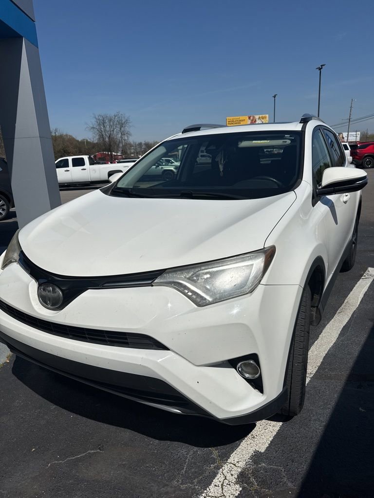 2018 Toyota RAV4 XLE White XLE FWD 6-Speed Automatic 2.5L 4-Cylinder DOHC Dual VVT-i Cloth, 3.815 Axle Ratio, 4-Wheel Disc Brakes, ABS brakes, Air Conditioning, Auto High-beam Headlights, Brake assist, Bumpers: body-color, Driver door bin, Driver vanity mirror, Dual front impact airbags, Dual front side impact airbags, Electronic Stability Control, Exterior Parking Camera Rear, Four wheel independent suspension, Front anti-roll bar, Front Bucket Seats, Front Center Armrest, Front reading lights, Fully automatic headlights, Illuminated entry, Knee airbag, Low tire pressure warning, Occupant sensing airbag, Outside temperature display, Overhead airbag, Overhead console, Panic alarm, Passenger door bin, Passenger vanity mirror, Power door mirrors, Power steering, Power windows, Radio data system, Rear anti-roll bar, Rear seat center armrest, Rear window defroster, Rear window wiper, Remote keyless entry, Speed control, Speed-sensing steering, Split folding rear seat, Spoiler, Steering wheel mounted audio controls, Tachometer, Telescoping steering wheel, Tilt steering wheel, Traction control, Trip computer, Cloth.