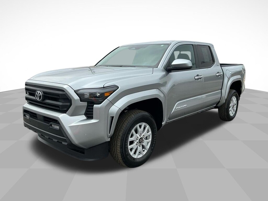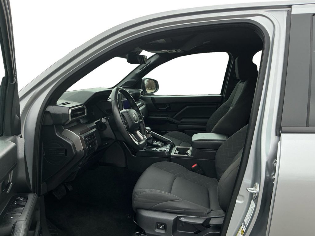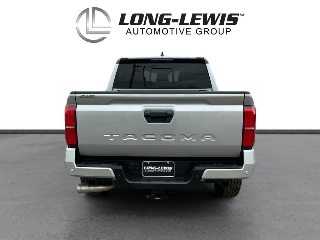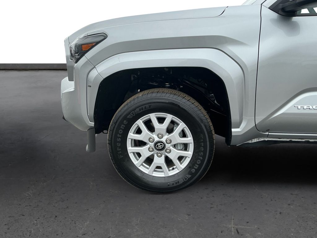 2024 Toyota Tacoma Silver RWD 8-Speed Automatic 2.4L 4-Cylinder 3.583 Axle Ratio, 4-Wheel Disc Brakes, 6 Speakers, ABS brakes, Air Conditioning, Alloy wheels, AM/FM radio: SiriusXM, Anti-whiplash front head restraints, Apple CarPlay/Android Auto, Auto High-beam Headlights, Auto-dimming Rear-View mirror, Brake assist, Bumpers: body-color, Driver door bin, Dual front impact airbags, Dual front side impact airbags, Electronic Stability Control, Emergency communication system: Safety Connect (1-year trial), Exterior Parking Camera Rear, Four wheel independent suspension, Front anti-roll bar, Front Bucket Seats, Front Center Armrest, Front fog lights, Front reading lights, Fully automatic headlights, Heated door mirrors, Illuminated entry, Knee airbag, Low tire pressure warning, Occupant sensing airbag, Outside temperature display, Overhead airbag, Overhead console, Panic alarm, Passenger door bin, Power door mirrors, Power steering, Power windows, Radio: 8 Toyota Audio Multimedia, Rear step bumper, Rear window defroster, Remote keyless entry, Speed control, Speed-sensing steering, Split folding rear seat, Steering wheel mounted audio controls, Tachometer, Telescoping steering wheel, Tilt steering wheel, Traction control, Trip computer, Variably intermittent wipers.